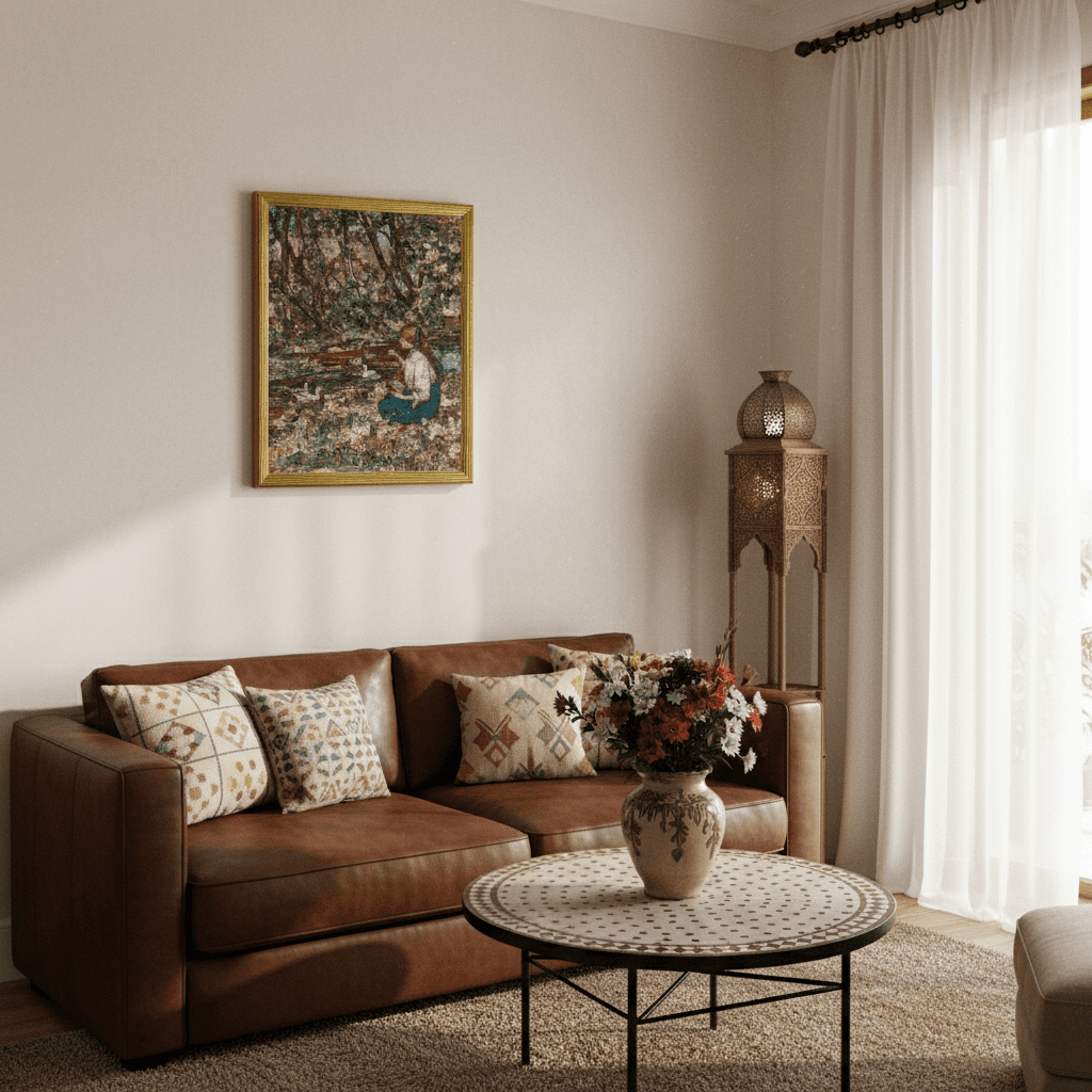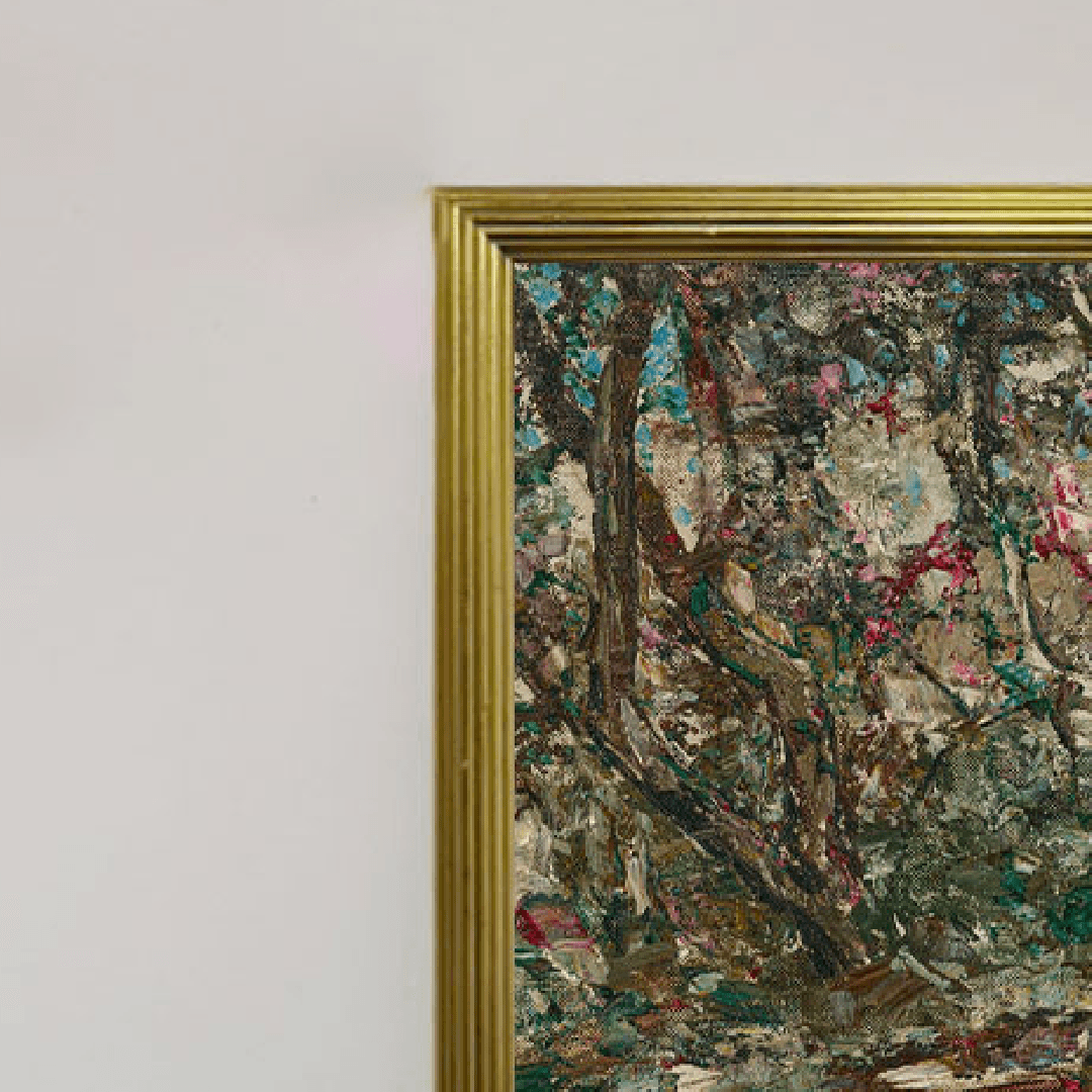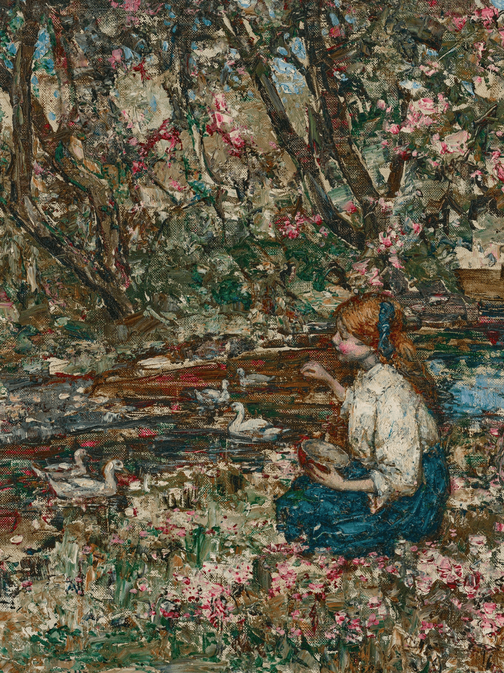 กรอบรูปลายเก่าสีทอง งานภาพพิมพ์ สไตล์ สีน้ำมันบนผ้าใบ ภาพ Feeding the Ducks (1918) Edward Atkinson Hornel (Scottish, 1864–1933)