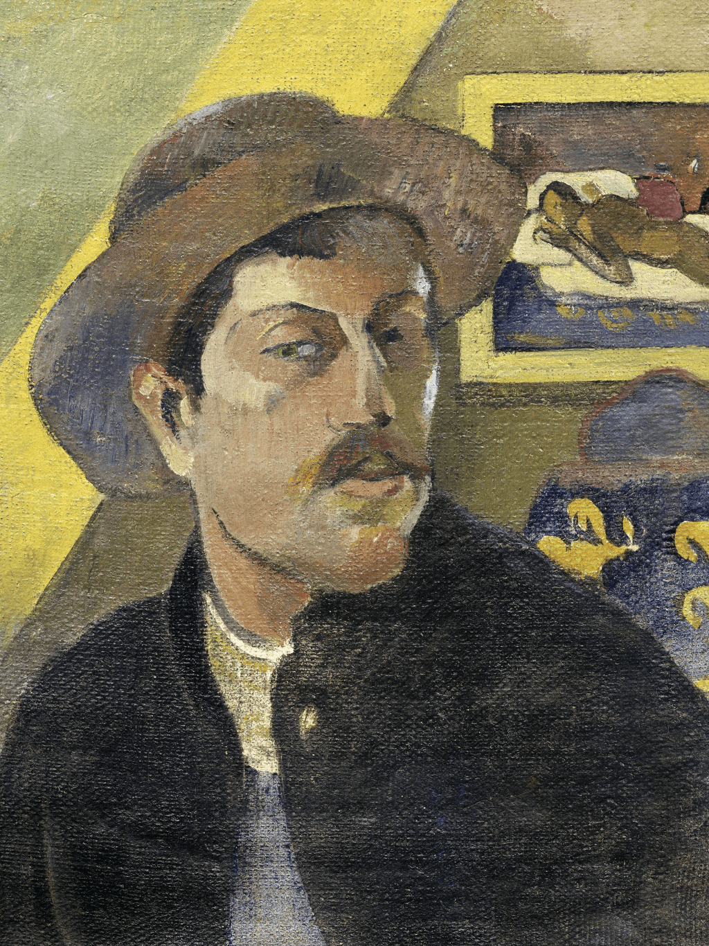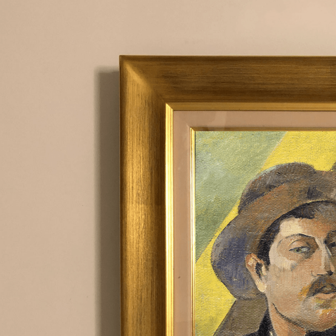 กรอบรูปไม้แท้ สีทอง ขอบหนา ภาพพิมพ์ Paul Gauguin's Self-Portrait in a Hat (1893)