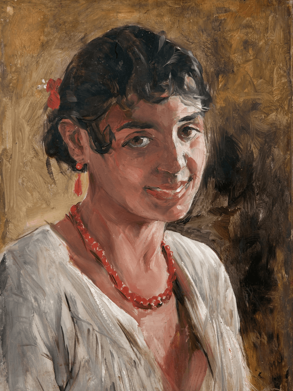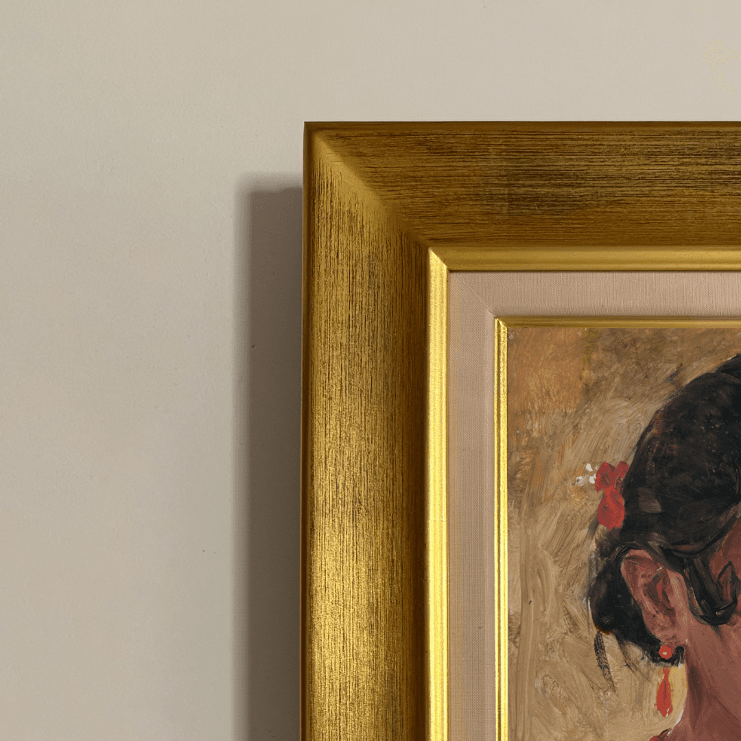 กรอบรูปไม้แท้ สีทอง ภาพพิมพ์สีน้ำมัน บนผ้าใบ ถาพ Smiling Spanish Girl, Study (between 1881 and 1882) Ernst Josephson (Swedish, 1851 - 1906)