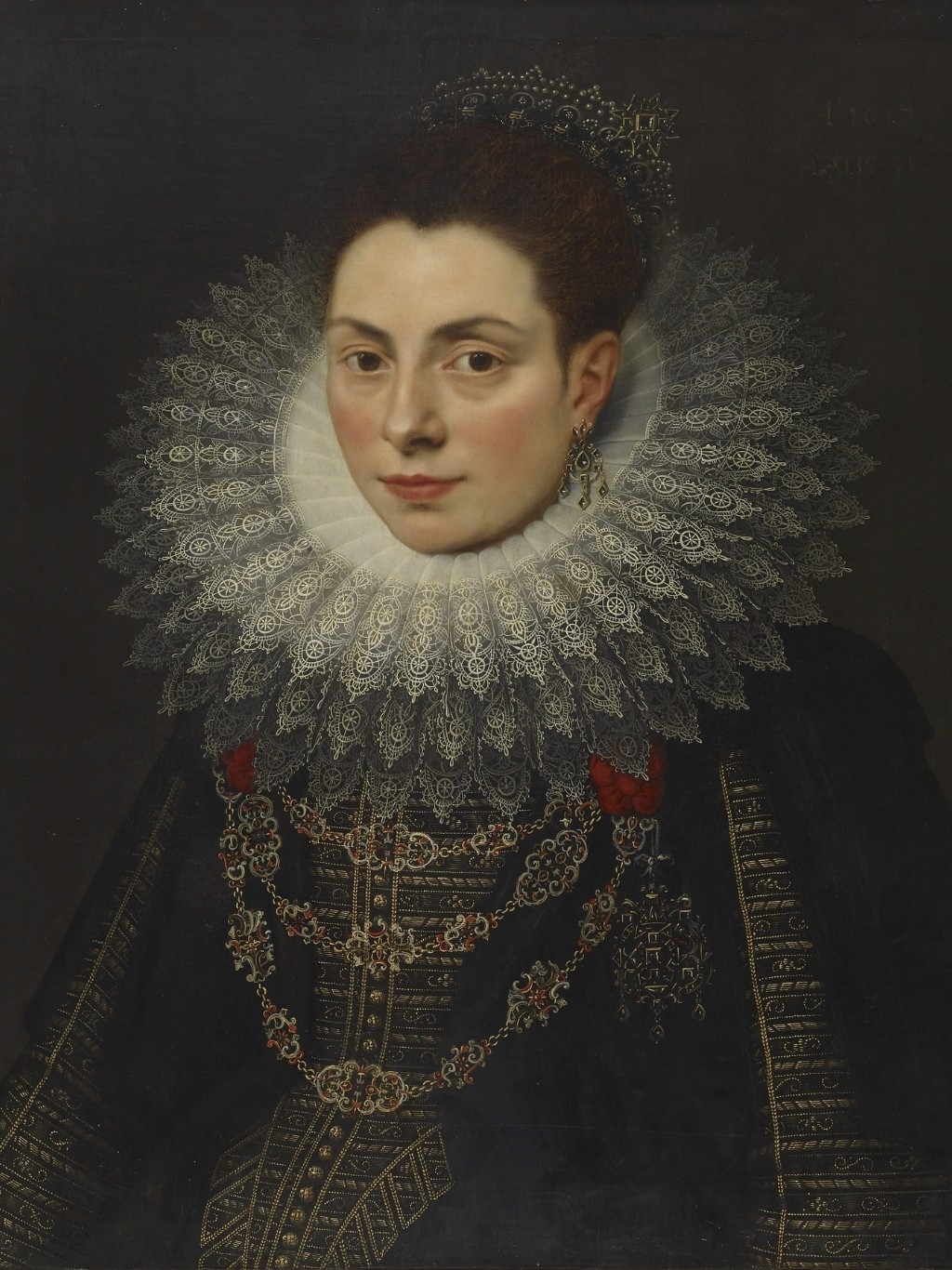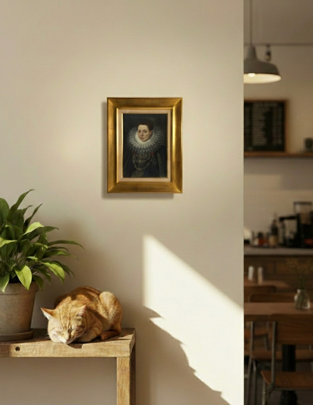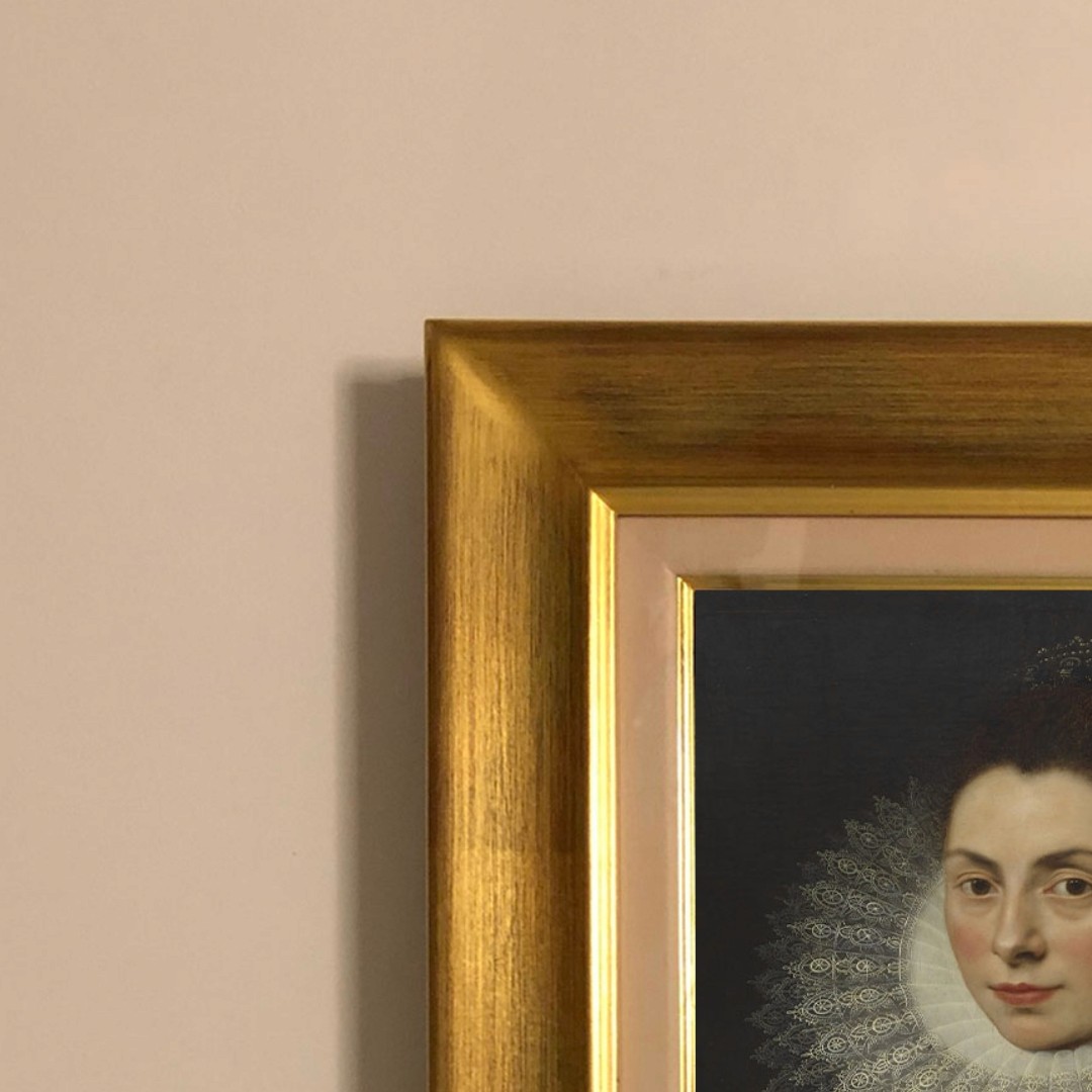 กรอบรูปไม้แท้ สีทอง ภาพพิมพ์สีน้ำมัน บนผ้าใบ ภาพ Portrait of a Noblewoman (1617) โดย Frans Pourbus the Younger