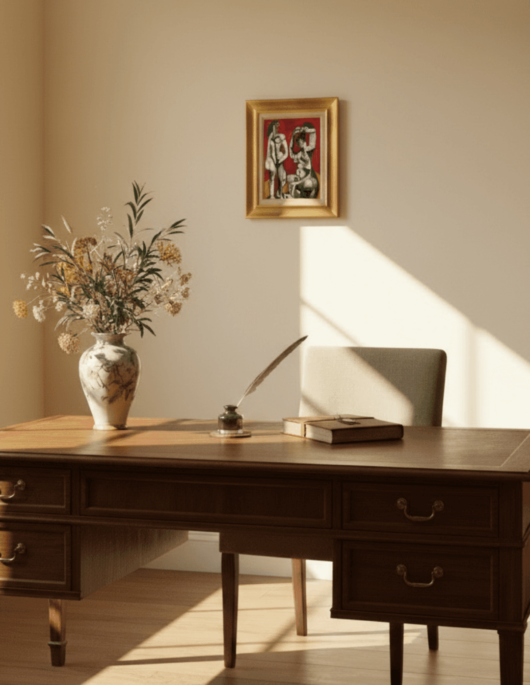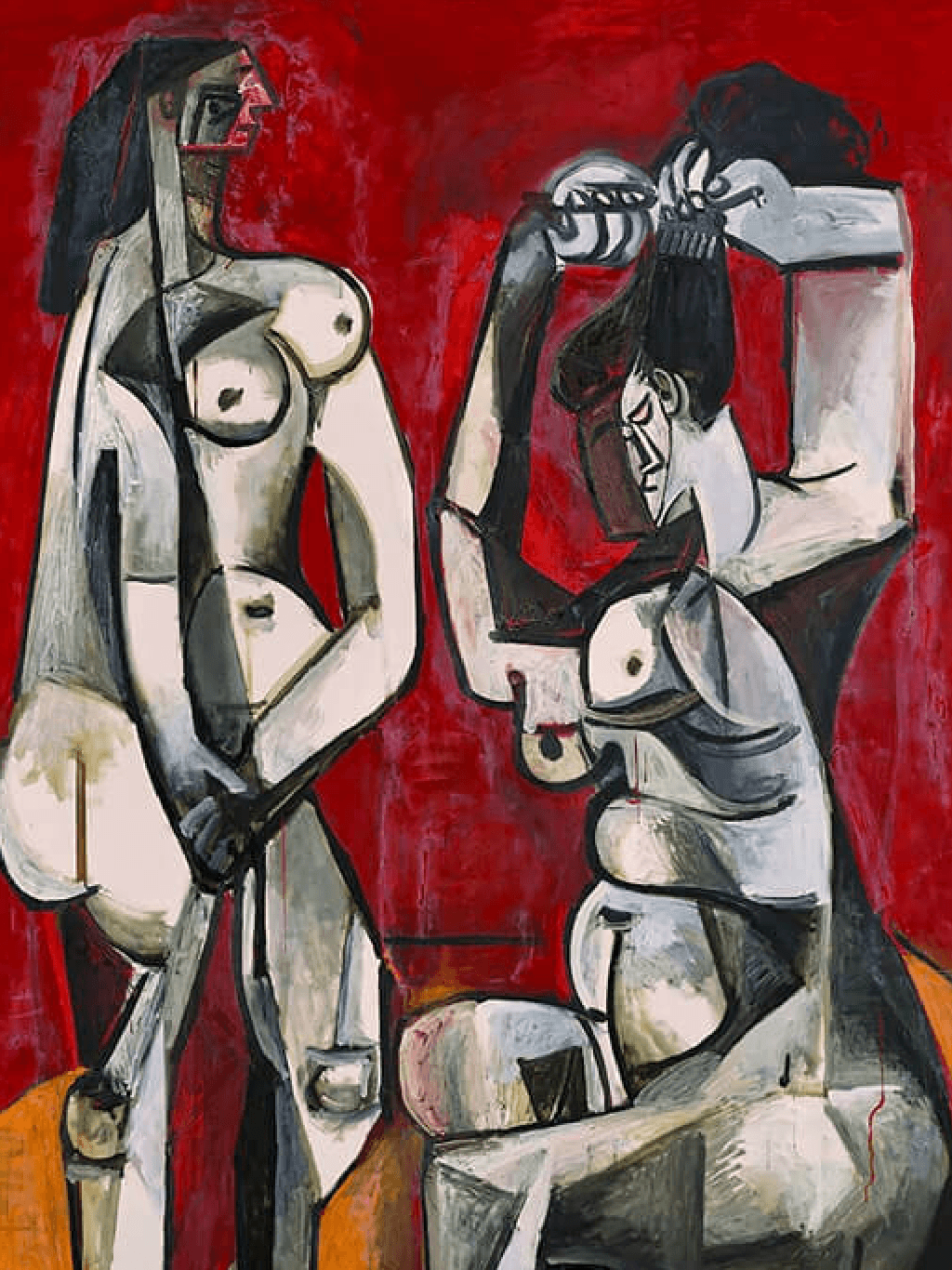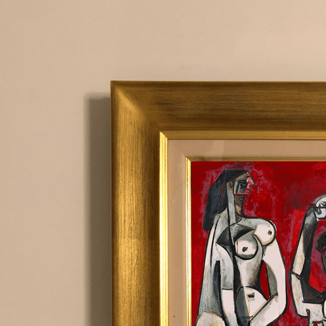 กรอบรูปไม้แท้ สีทอง ภาพพิมพ์สีน้ำมัน บนผ้าใบ ถาพ Pablo Picasso Femmes à la Toilette 1956
