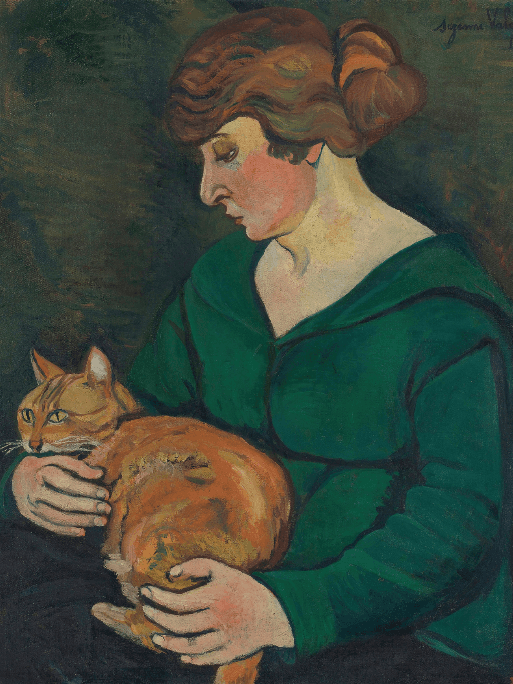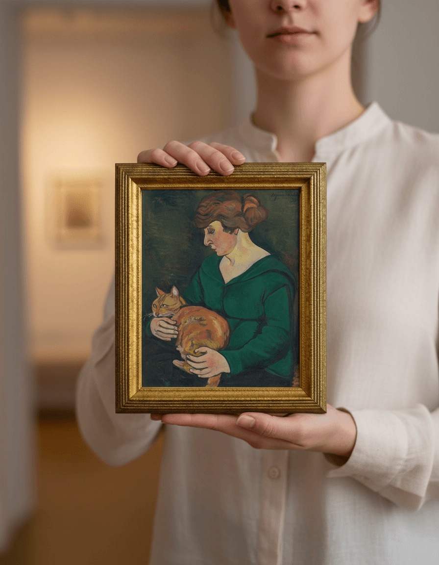 กรอบรูปโลหะสีดำด้าน ภาพพิมพ์ สไตล์สีน้ำมัน บนผ้าใบ ภาพ Louson Et Raminou (1920) Suzanne Valadon (French, 1865-1938)