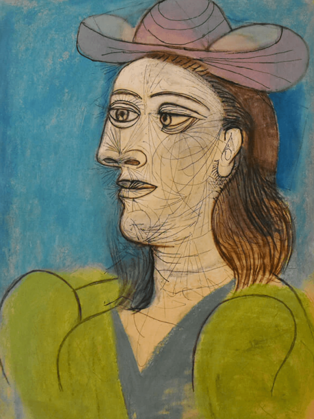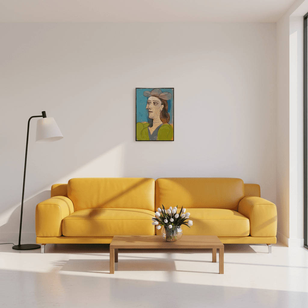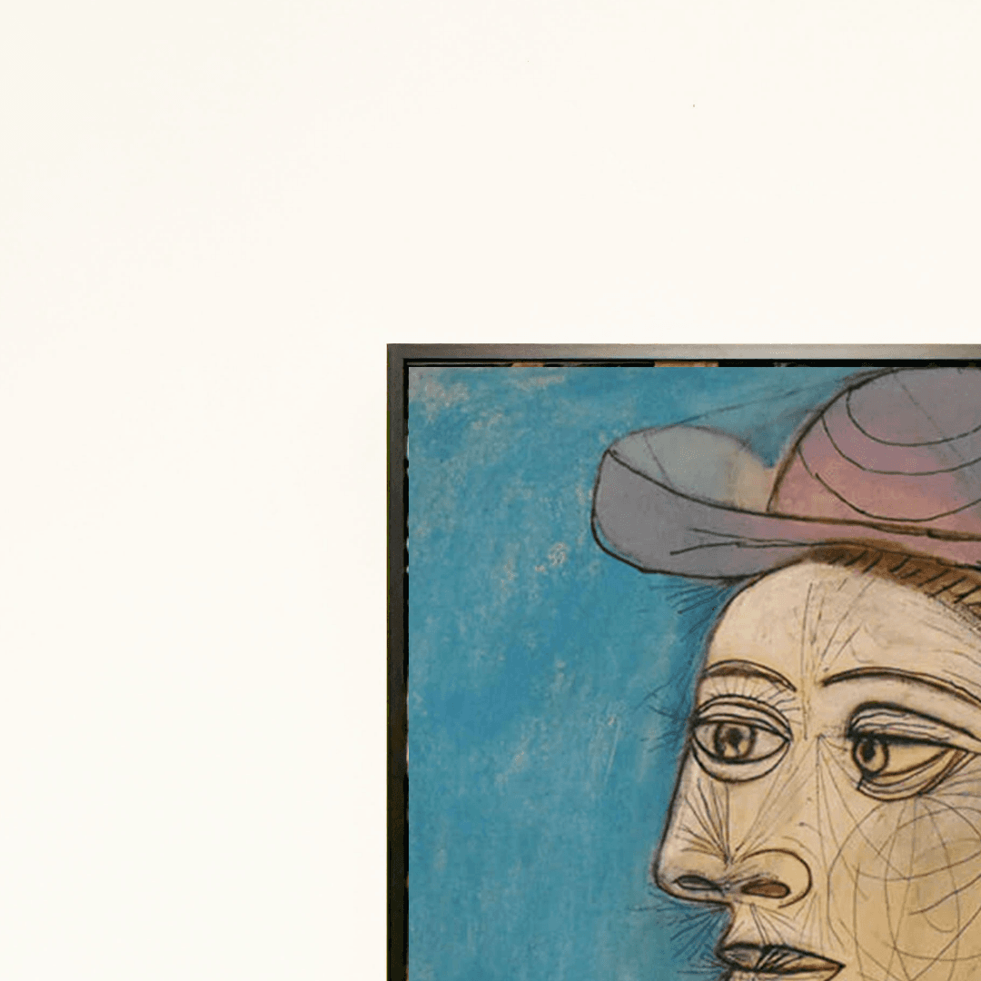 กรอบรูปโลหะสีดำด้าน ภาพพิมพ์ สไตล์ Sketching บนผ้าใบ ภาพ Woman with a Hat 1938 ของ Pablo Picasso
