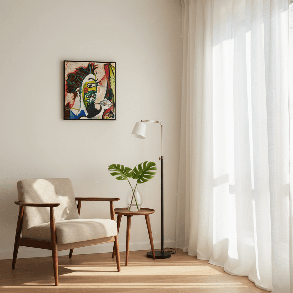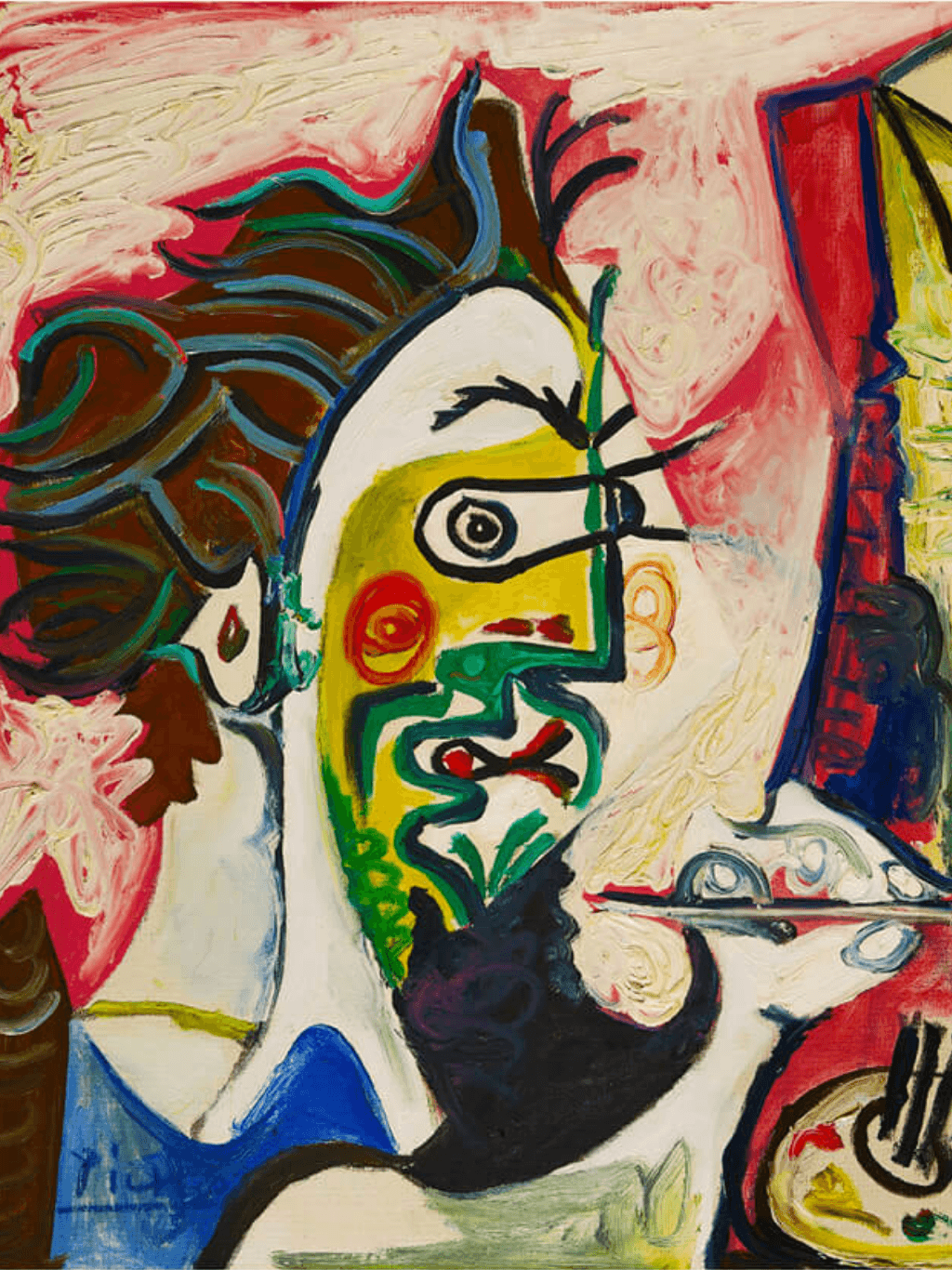 กรอบรูปโลหะสีดำด้าน ภาพพิมพ์ สไตล์ สีน้ำมัน บนผ้าใบ ภาพ Le Peintre II 1963 ของ Pablo Picasso