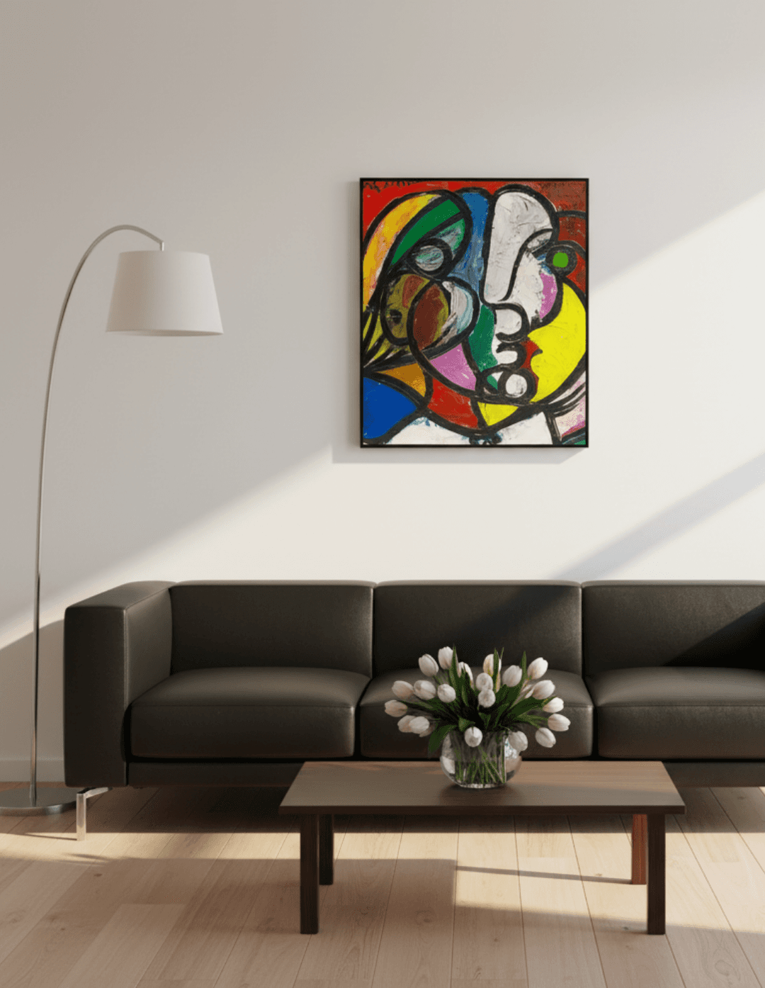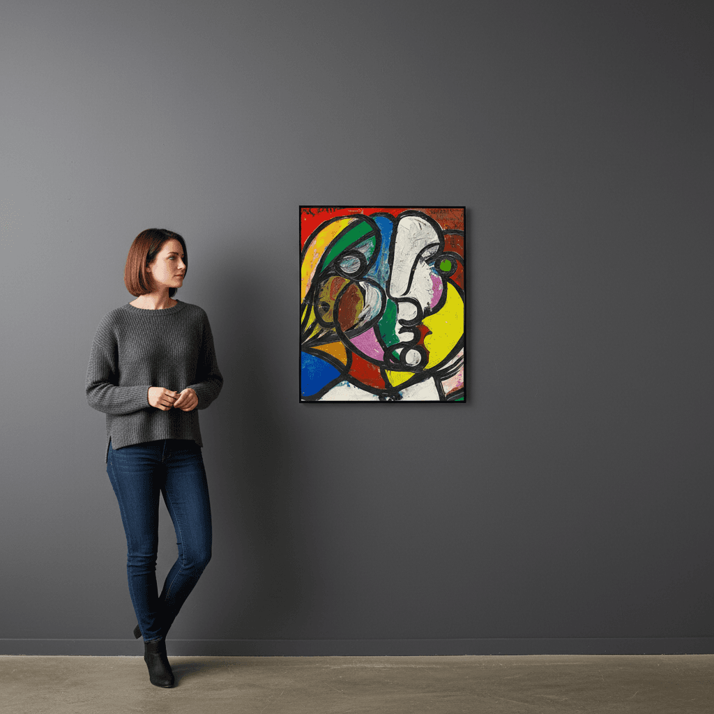 กรอบรูปโลหะสีดำด้าน ภาพพิมพ์ สไตล์สีชอล์ค บนผ้าใบ ภาพ Tete de Marie Therese 1932-34 ของ pablo picasso