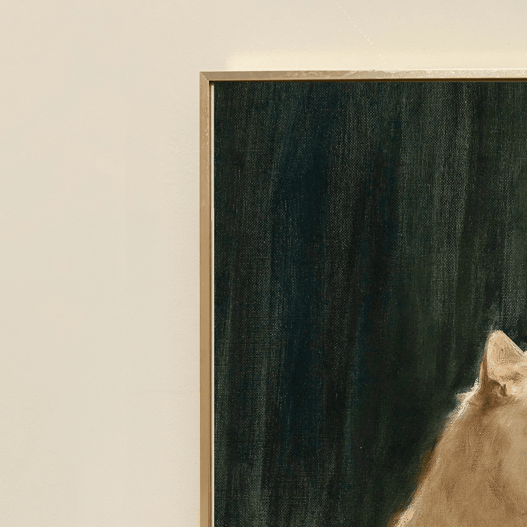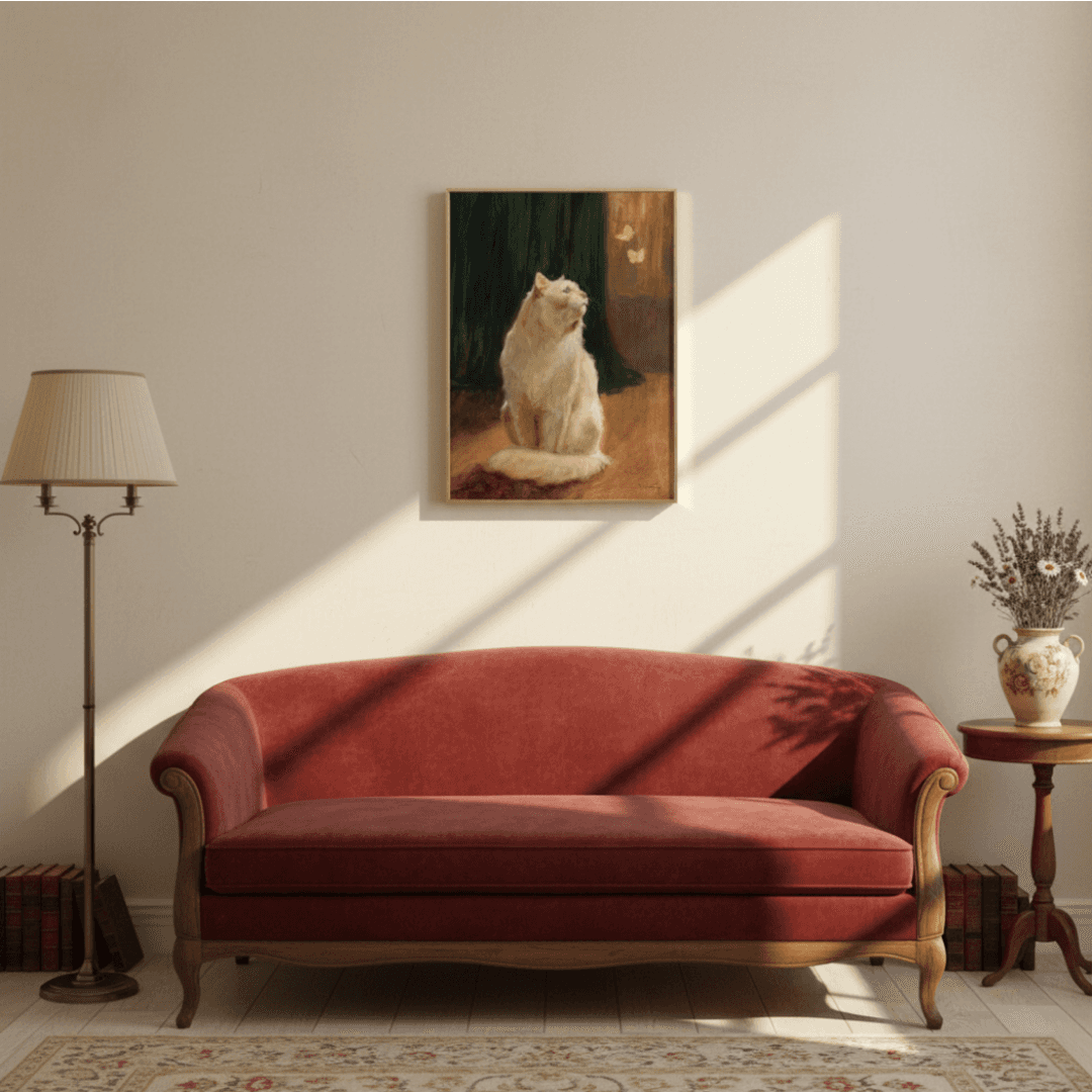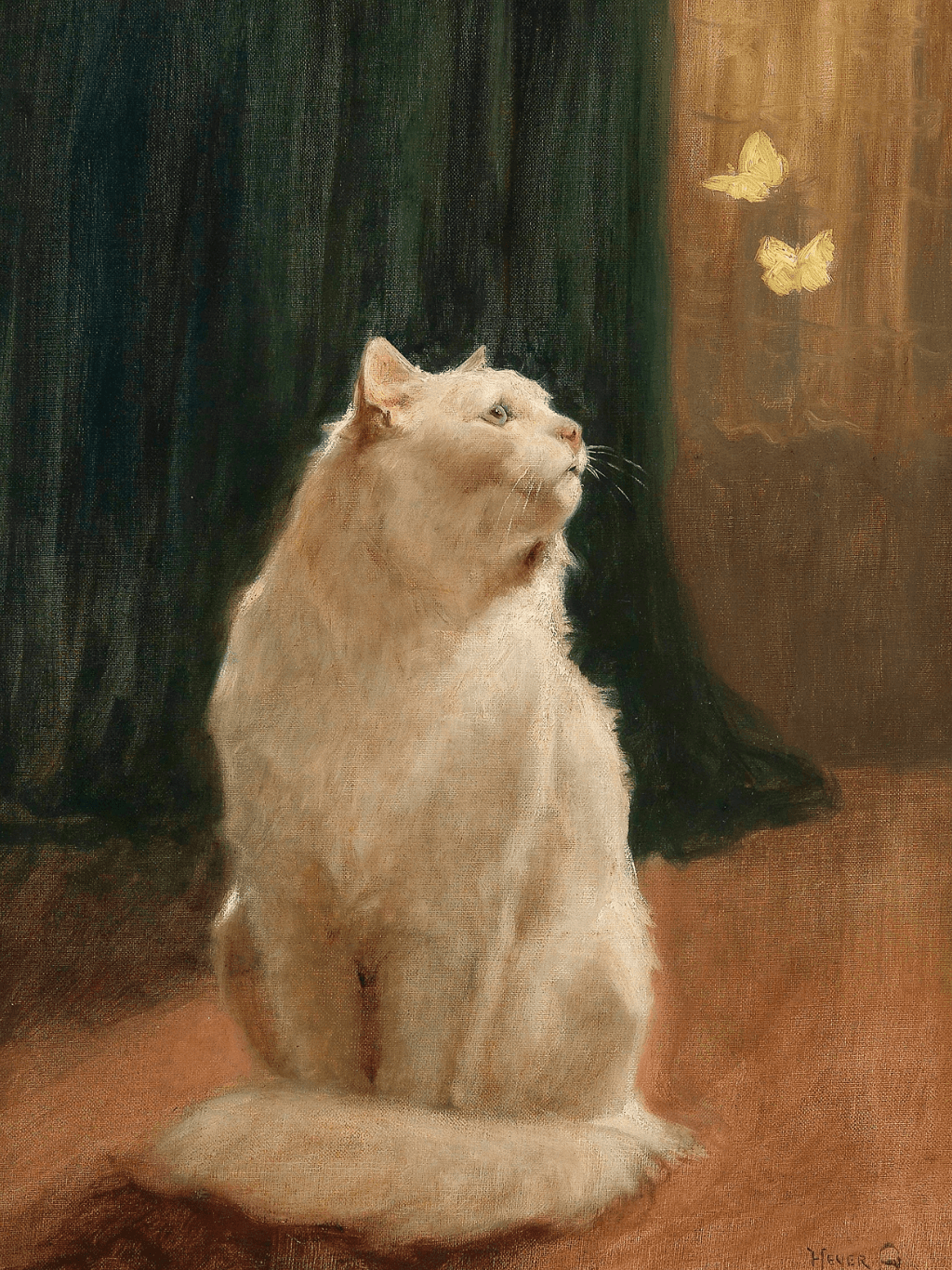 กรอบรูปอลูมิเนียมสีทอง ภาพ White Cat and Two Brimstone Butterflies by the German-Hungarian painter Arthur Heyer (1872–1931)