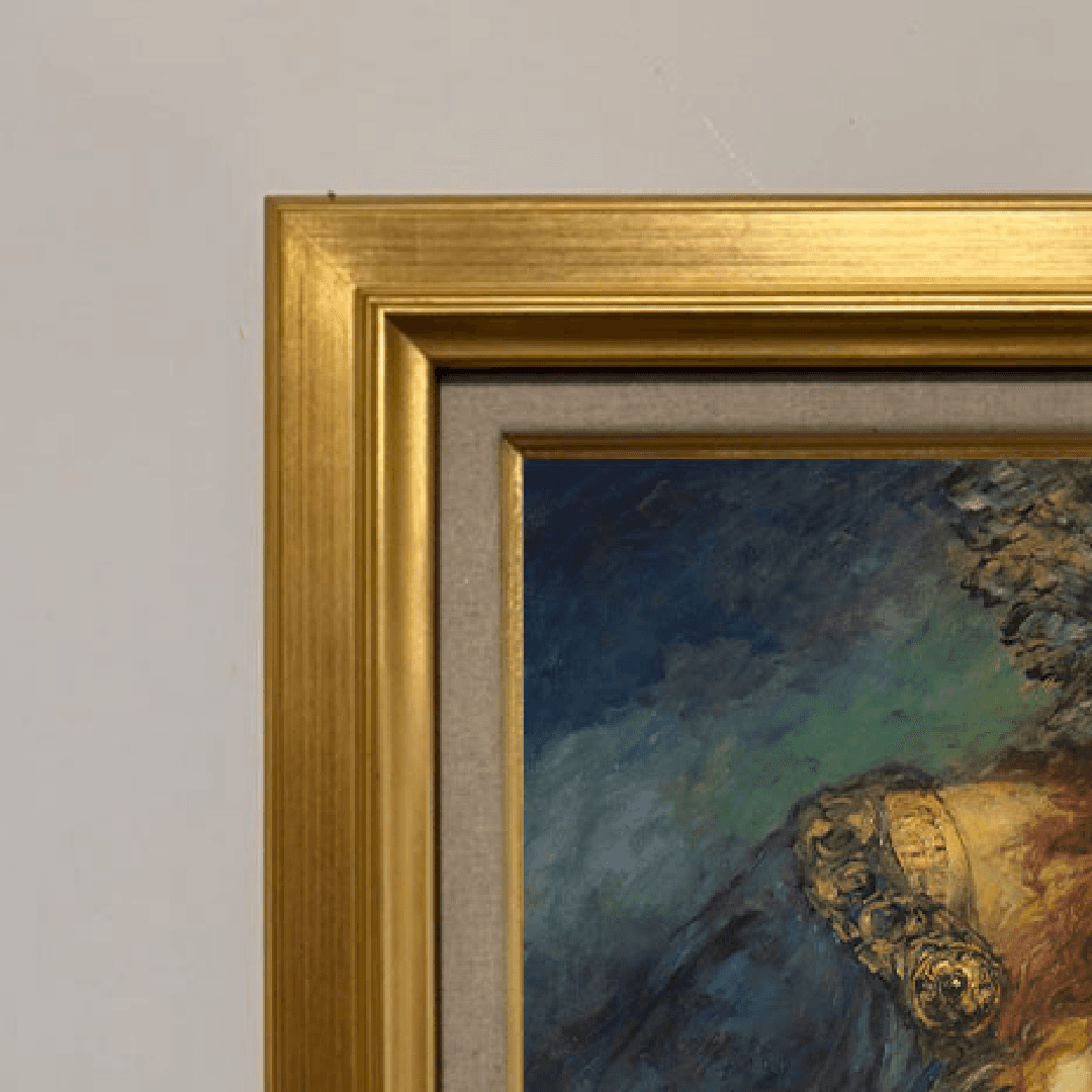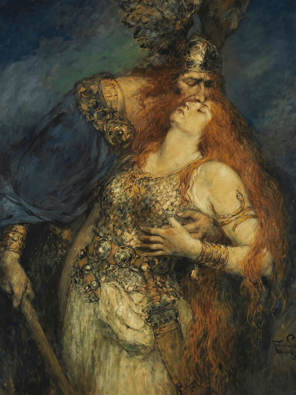 กรอบรูปไม้แท้ สีทอง ภาพพิมพ์สีน้ำมัน บนผ้าใบ ถาพ Wotan’s farewell (1910) Ferdinand Leeke (German, 1859 – 1923)
