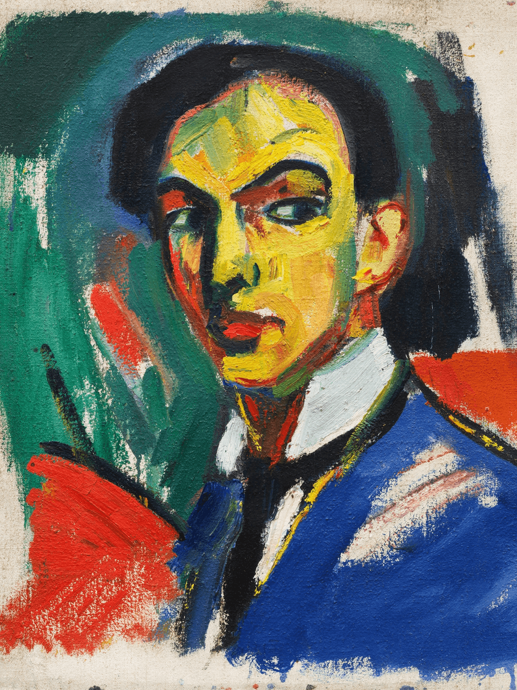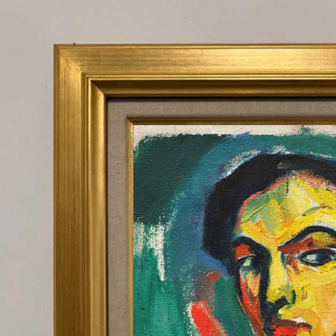 กรอบรูปไม้แท้ สีทอง ภาพพิมพ์สีน้ำมัน บนผ้าใบ ถาพ Skizze zu einem Selbstbildnis (1912) Hermann Stenner (German, 1891-1914)