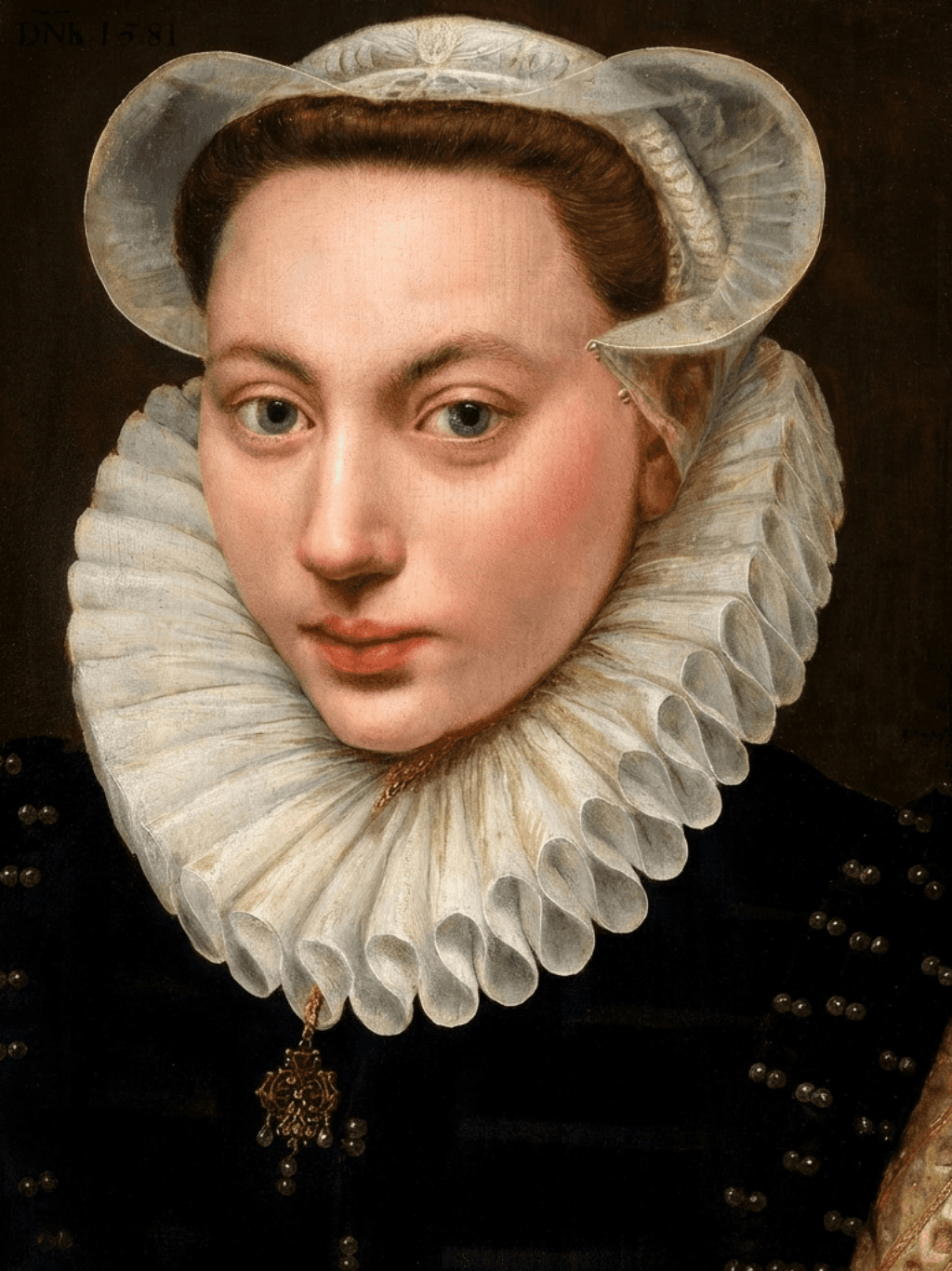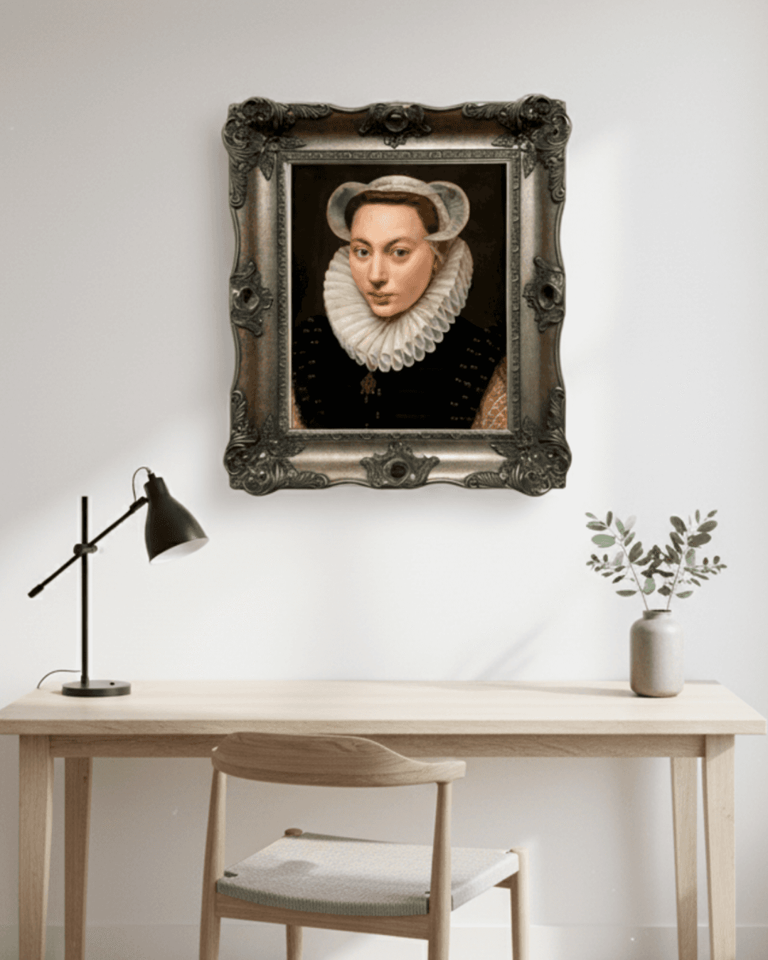 กรอบรูปหลุยส์ไม้แท้ งานเก่า สี Silver ขนาดใหญ่ ลายเก่า งานภาพพิมพ์ความละเอียดสูงสไตล์ สีน้ำมันบนผ้าใบ ภาพ Portrait of a Young Woman Frans Pourbus the Elder (1545–1581)