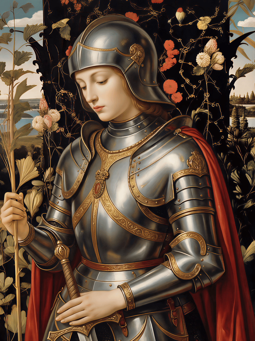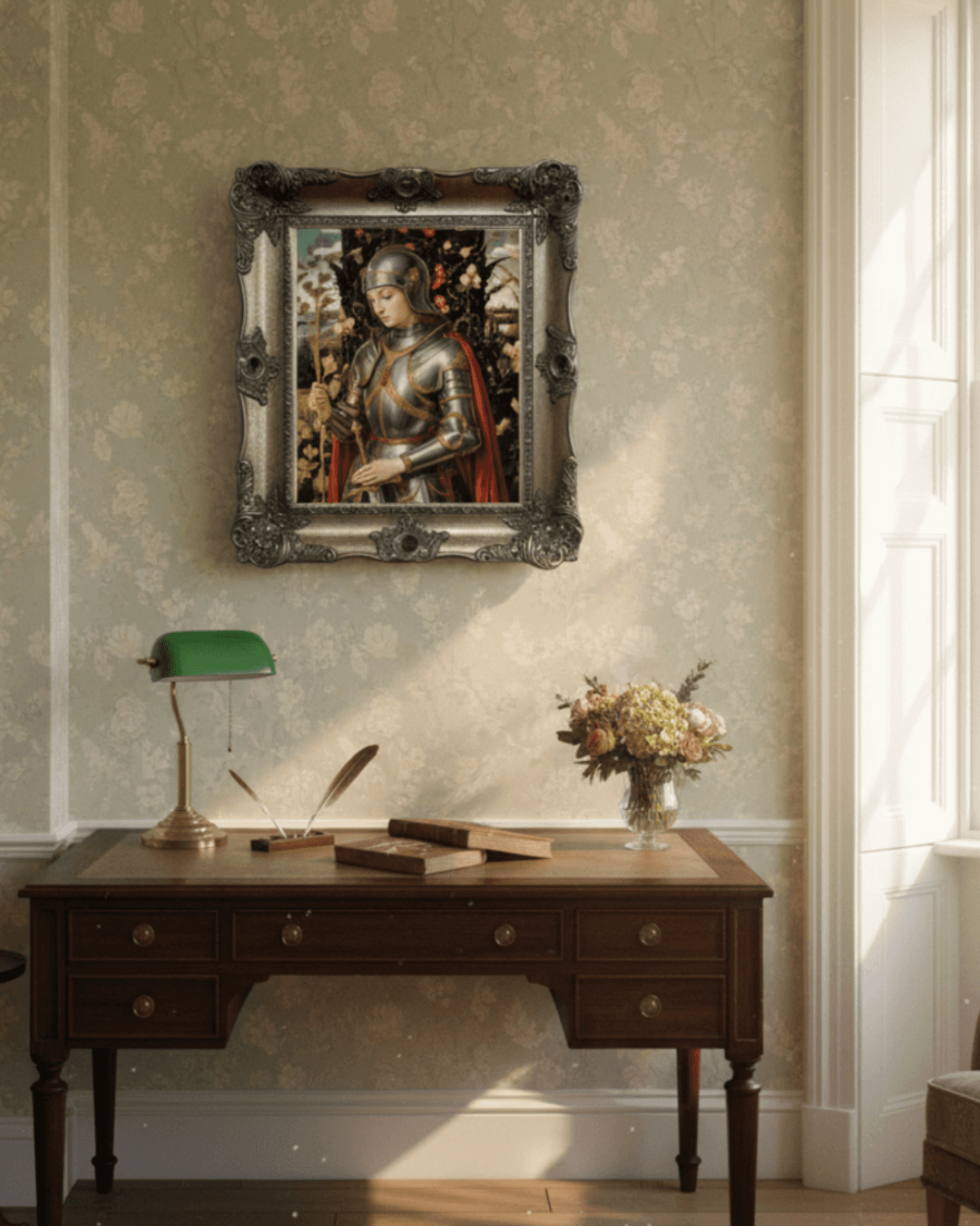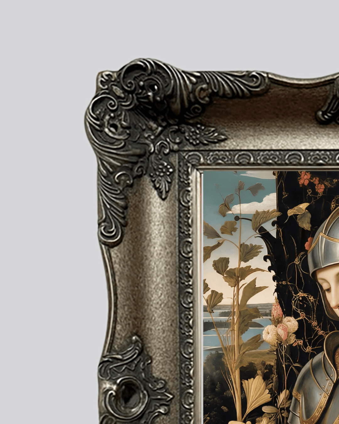 กรอบรูปหลุยส์ไม้แท้ งานเก่า สี Silver ขนาดใหญ่ ลายเก่า งานภาพพิมพ์ความละเอียดสูงสไตล์ สีน้ำมันบนผ้าใบ ภาพ Joan of Arc