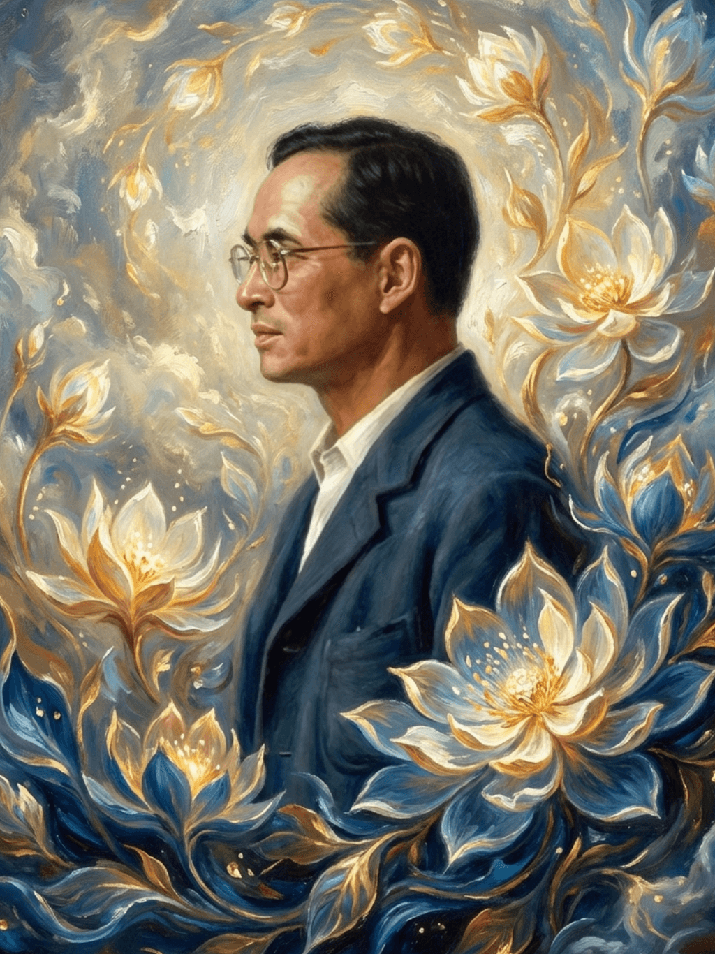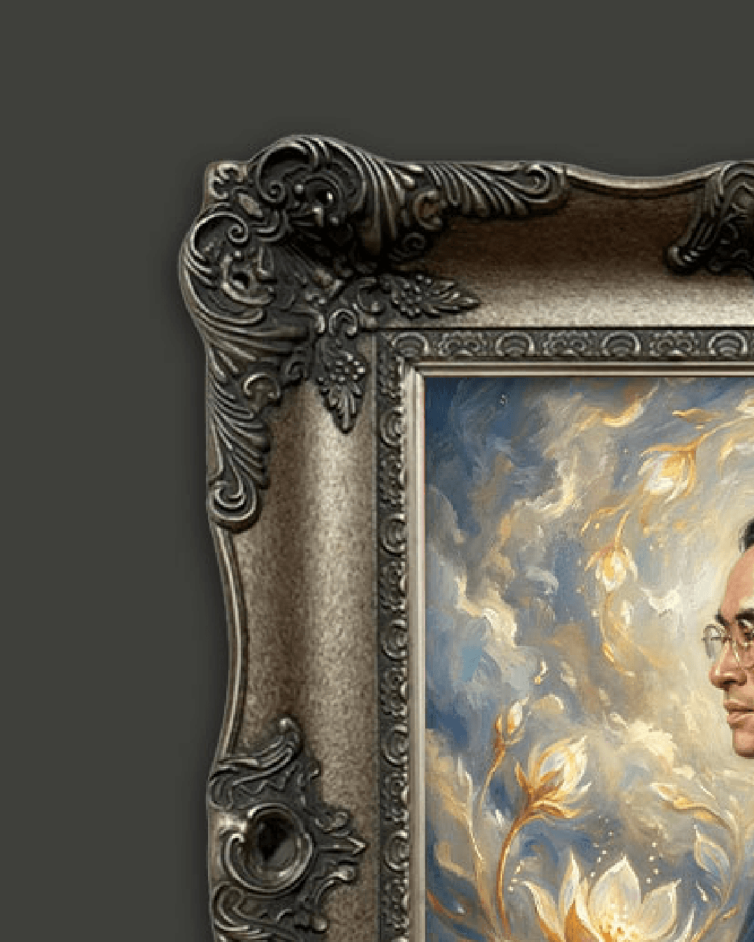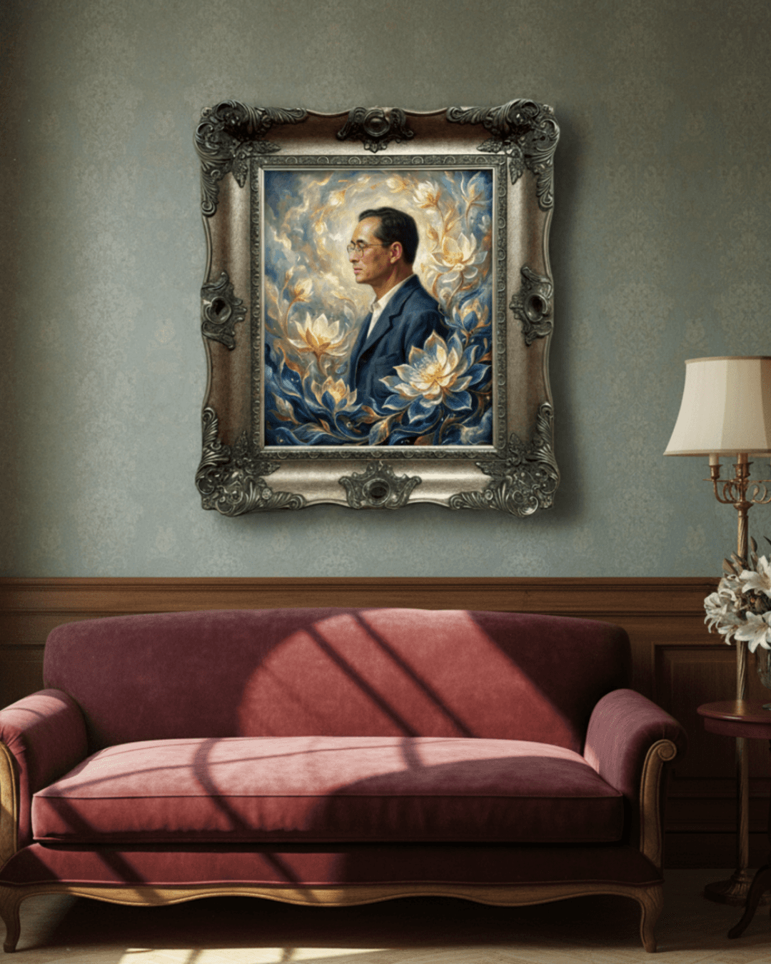 กรอบรูปหลุยส์ไม้แท้ งานเก่า สี Silver ขนาดใหญ่ ลายเก่า งานภาพพิมพ์ความละเอียดสูงสไตล์ สีน้ำมันบนผ้าใบ ภาพ รัชกาลที่ 9