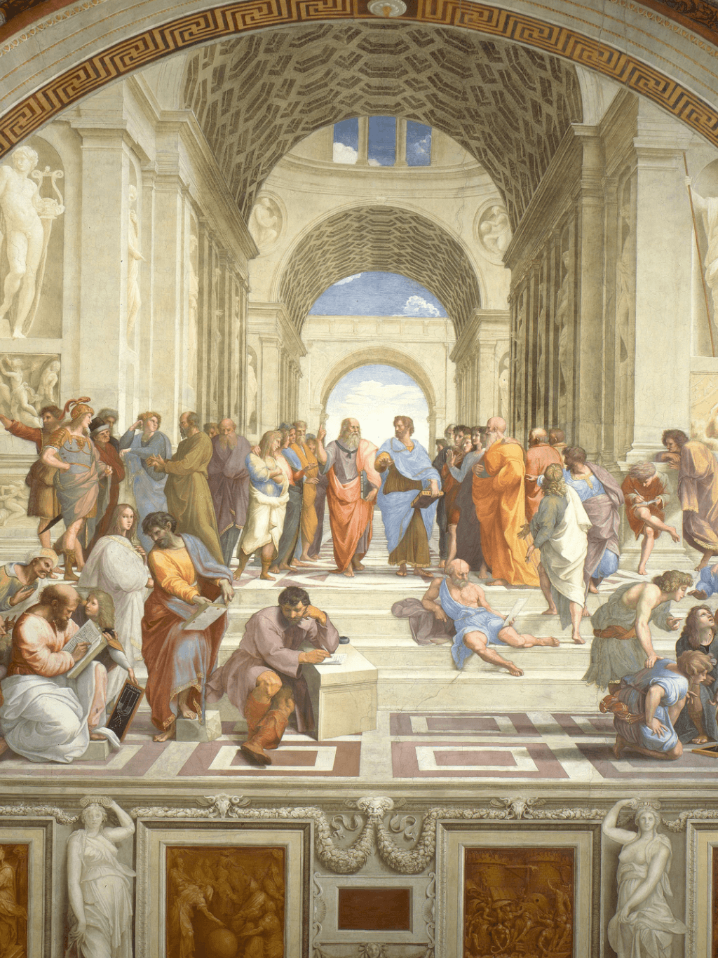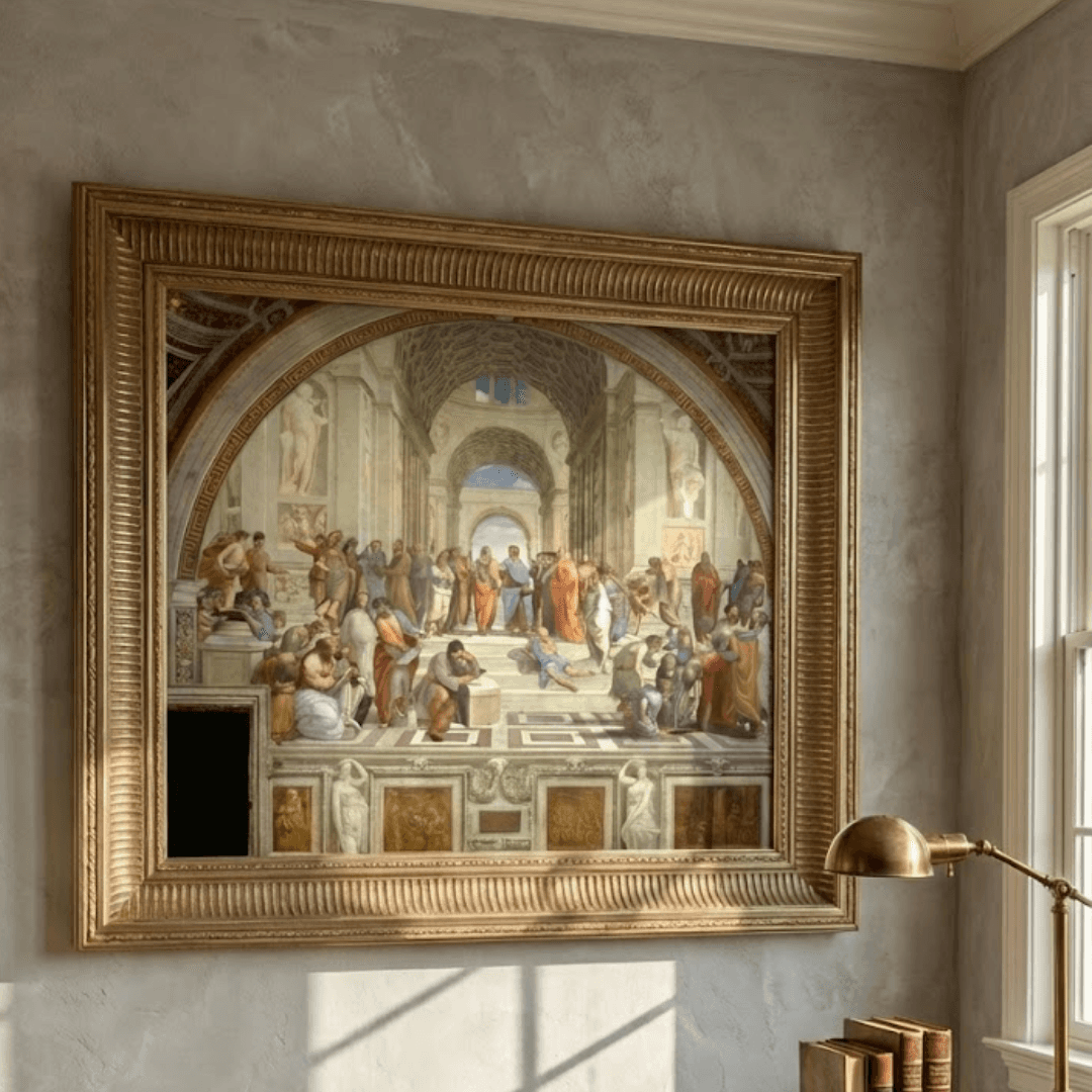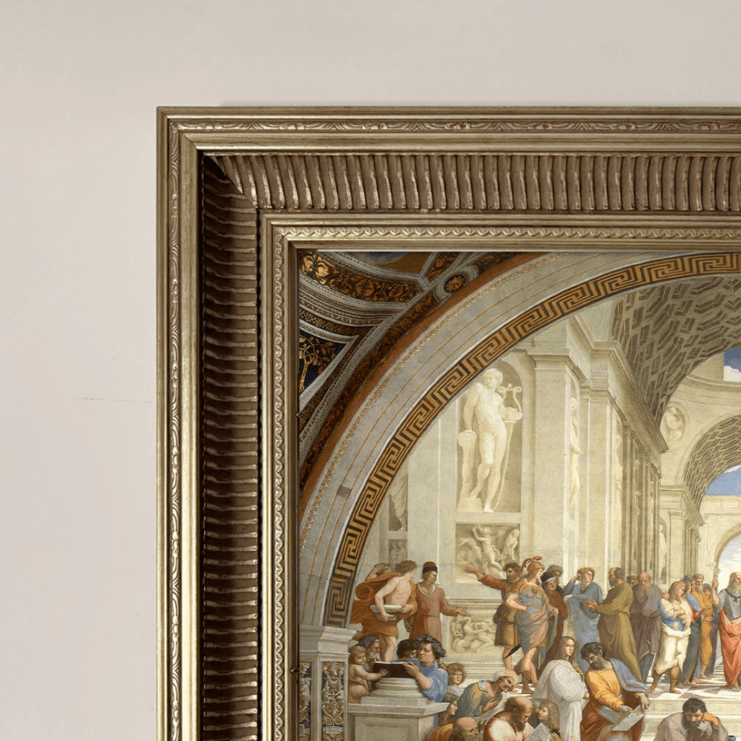 กรอบรูปลายเก่า งานเนื้อไม้แท้ งานภาพพิมพ์ สไตล์ สีน้ำมันบนผ้าใบ ภาพ The School of Athens" by Raffaello Sanzio da Urbino