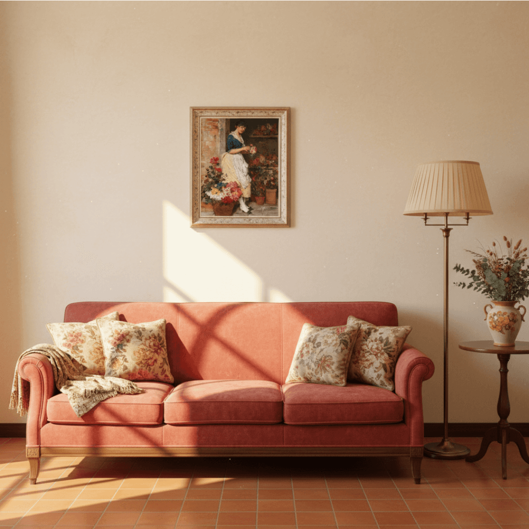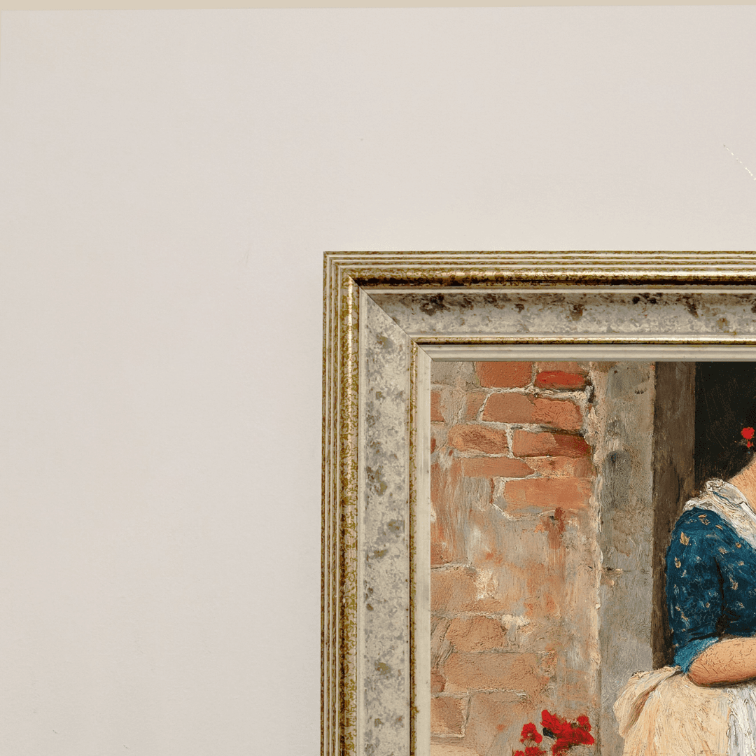 กรอบรูปลายไม้แท้งาน ลาย Vintage รุ่นเก่า งานภาพพิมพ์ สไตล์ สีน้ำมันบนผ้าใบ ภาพ Venezianisches Blumenmädchen Eugen von Blaas (Italian, 1843 – 1931)