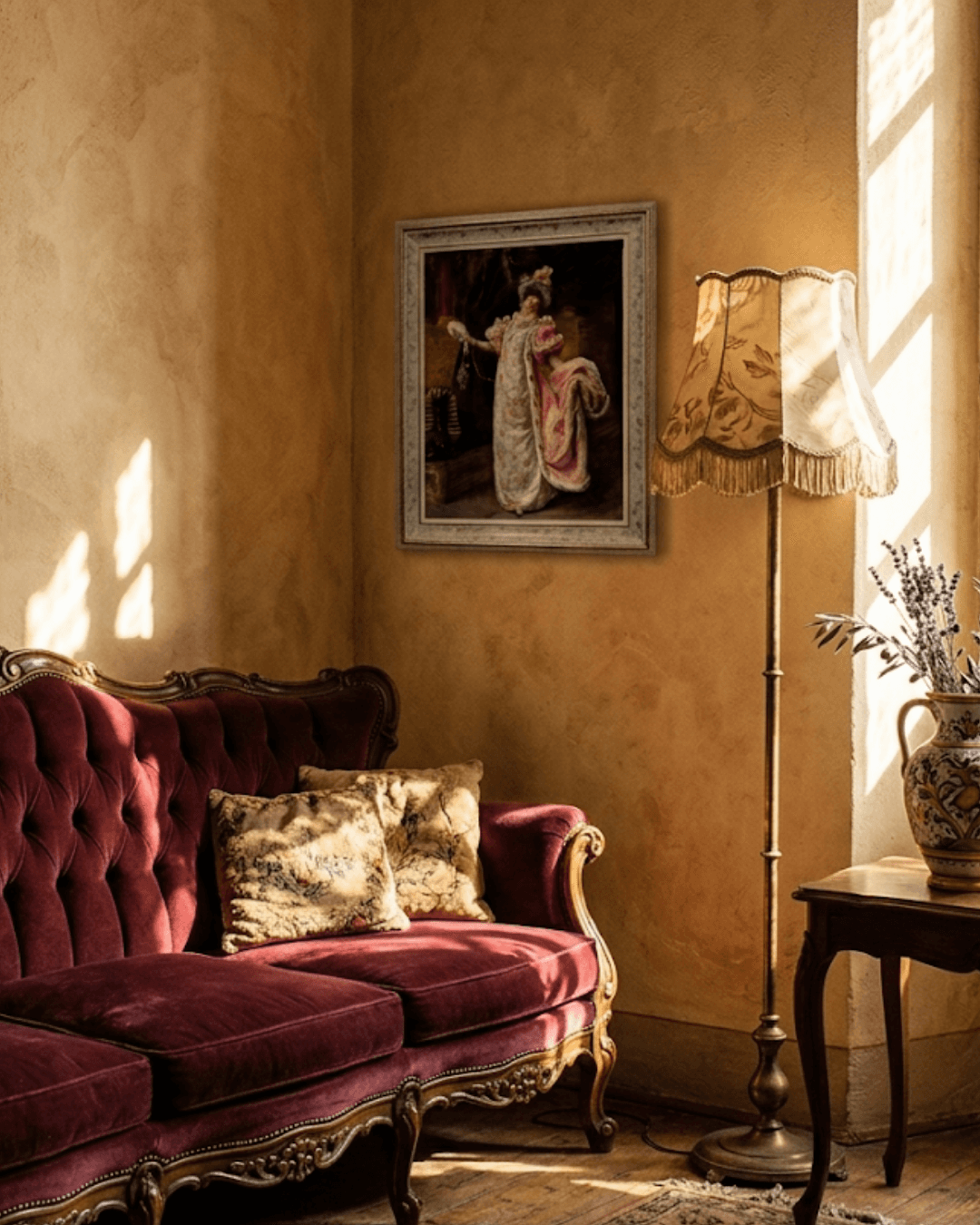 กรอบรูปลายไม้แท้งาน ลาย Vintage รุ่นเก่า งานภาพพิมพ์ สไตล์ สีน้ำมันบนผ้าใบ ภาพ Arriving at the opera Eduardo Leon Garrido (Spanish, 1856-1906)