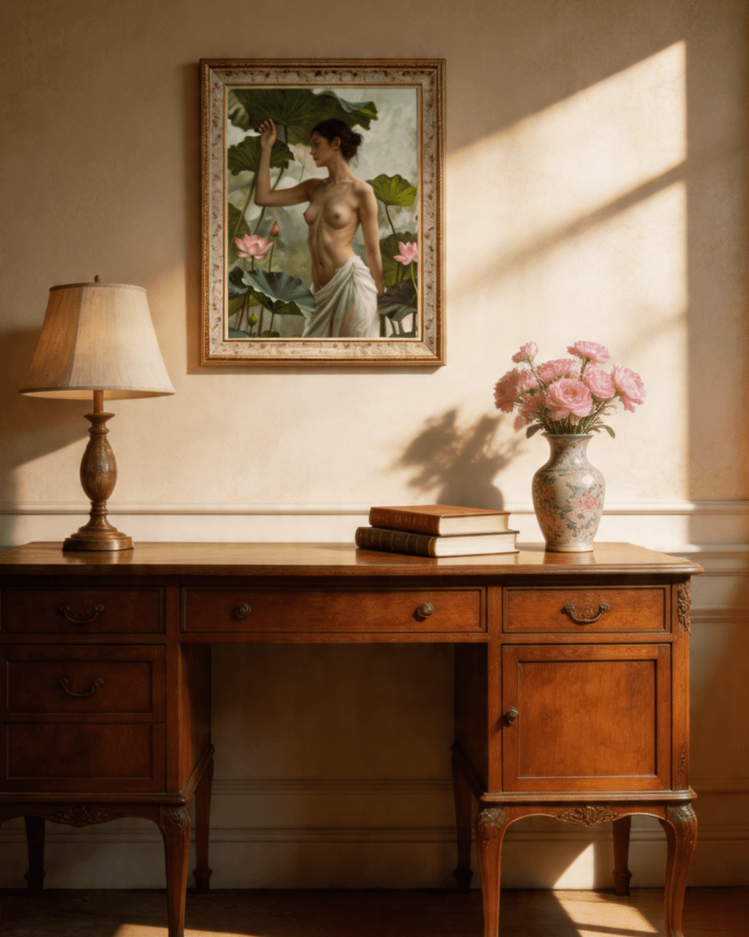กรอบรูปลายไม้แท้งาน ลาย Vintage รุ่นเก่า งานภาพพิมพ์ The Lady Portrait