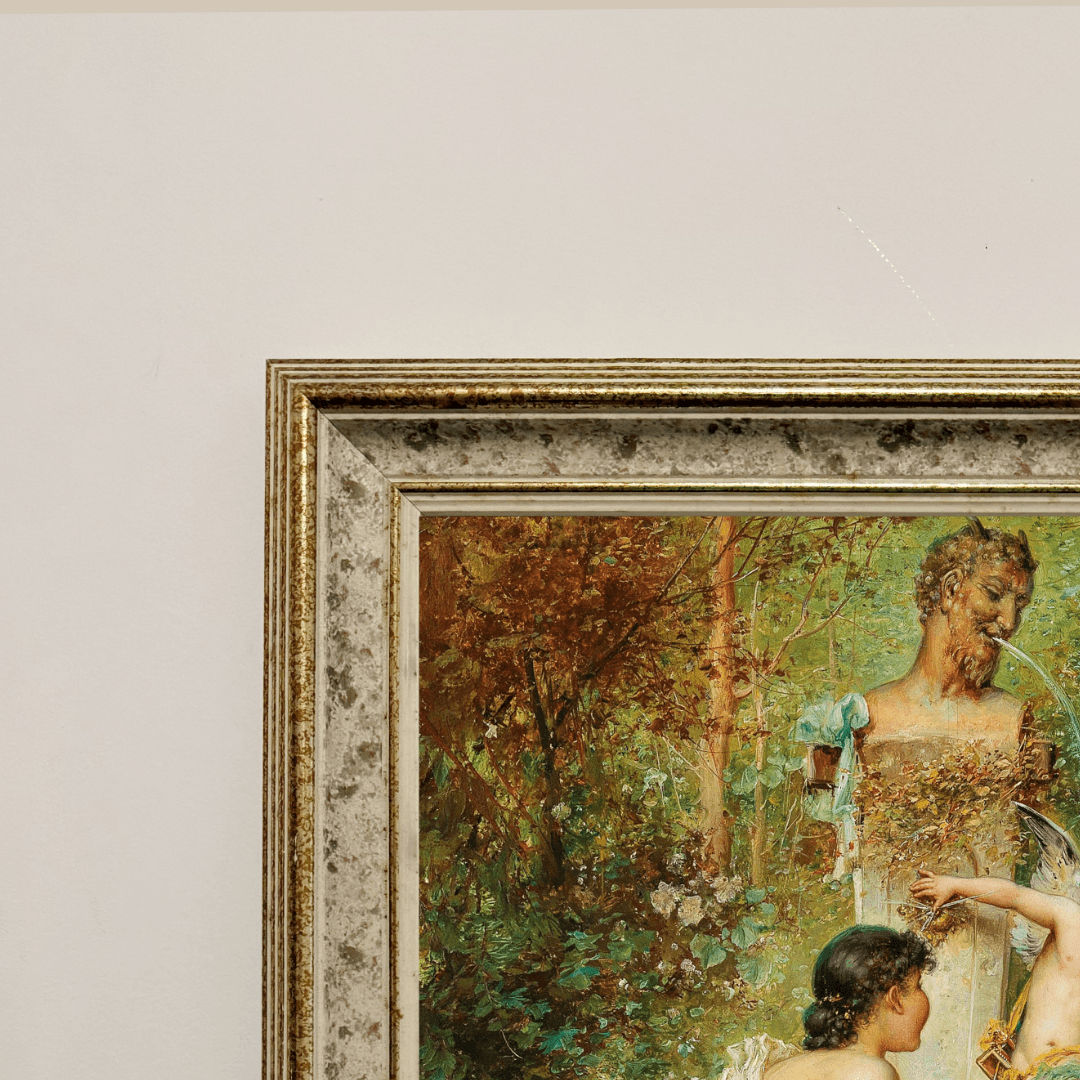 กรอบรูปลายไม้แท้งาน ลาย Vintage รุ่นเก่า งานภาพพิมพ์ สไตล์ สีน้ำมันบนผ้าใบ ภาพ Bestrafter Übermuth Hans Zatzka (Austrian, 1859 – 1945)