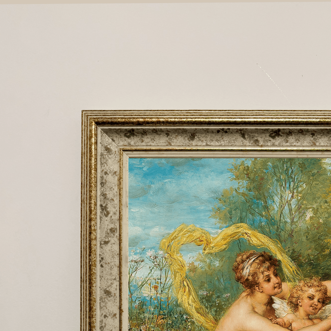 กรอบรูปลายไม้แท้งาน ลาย Vintage รุ่นเก่า งานภาพพิมพ์ สไตล์ สีน้ำมันบนผ้าใบ ภาพ Fishing Hans Zatzka (Austrian, 1859 – 1945)