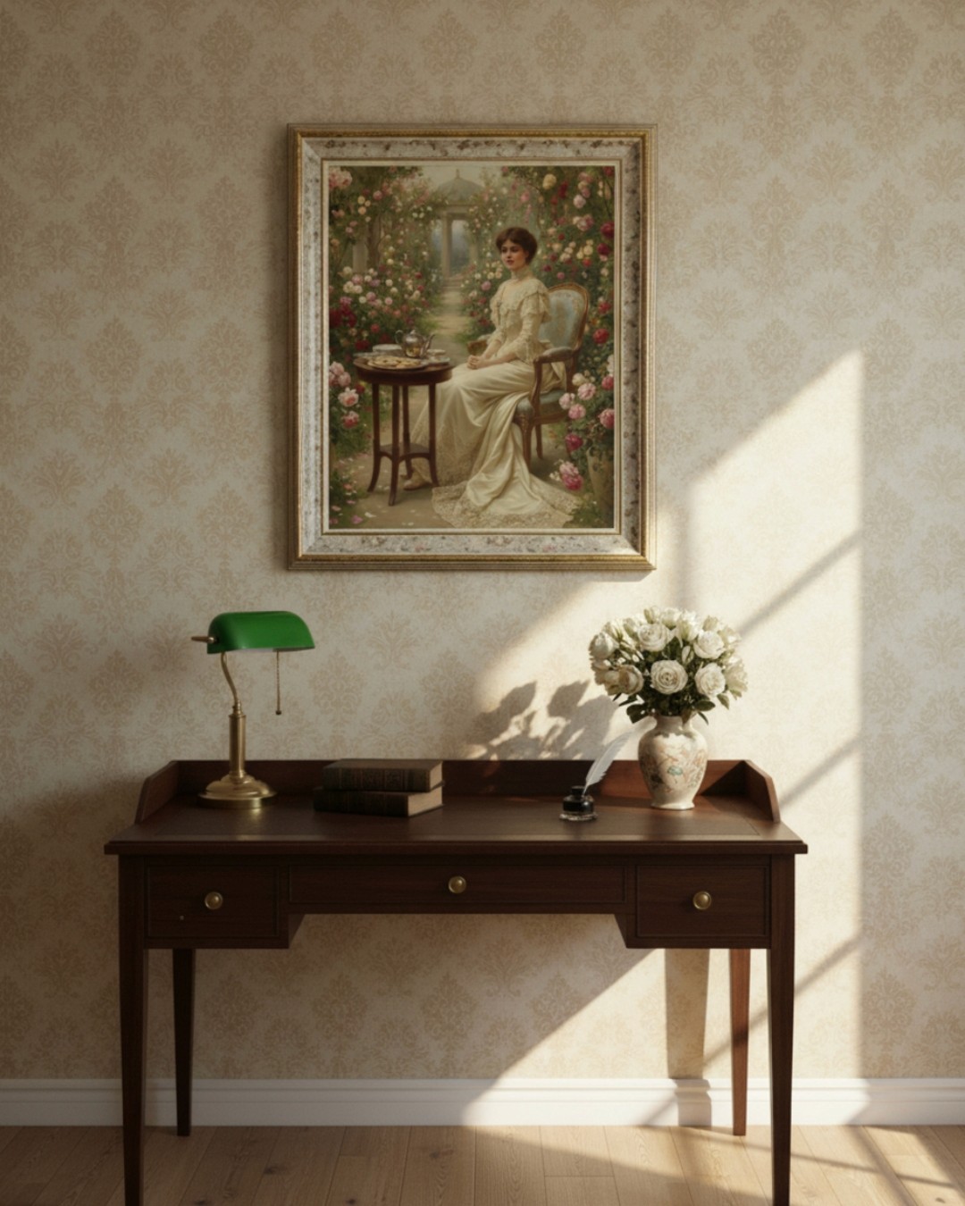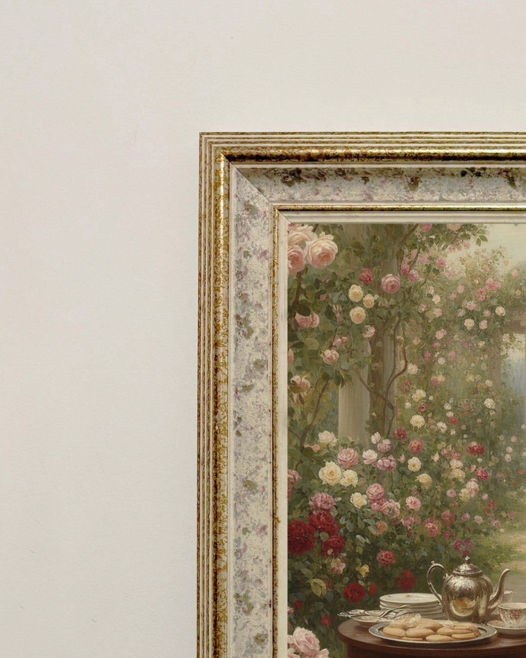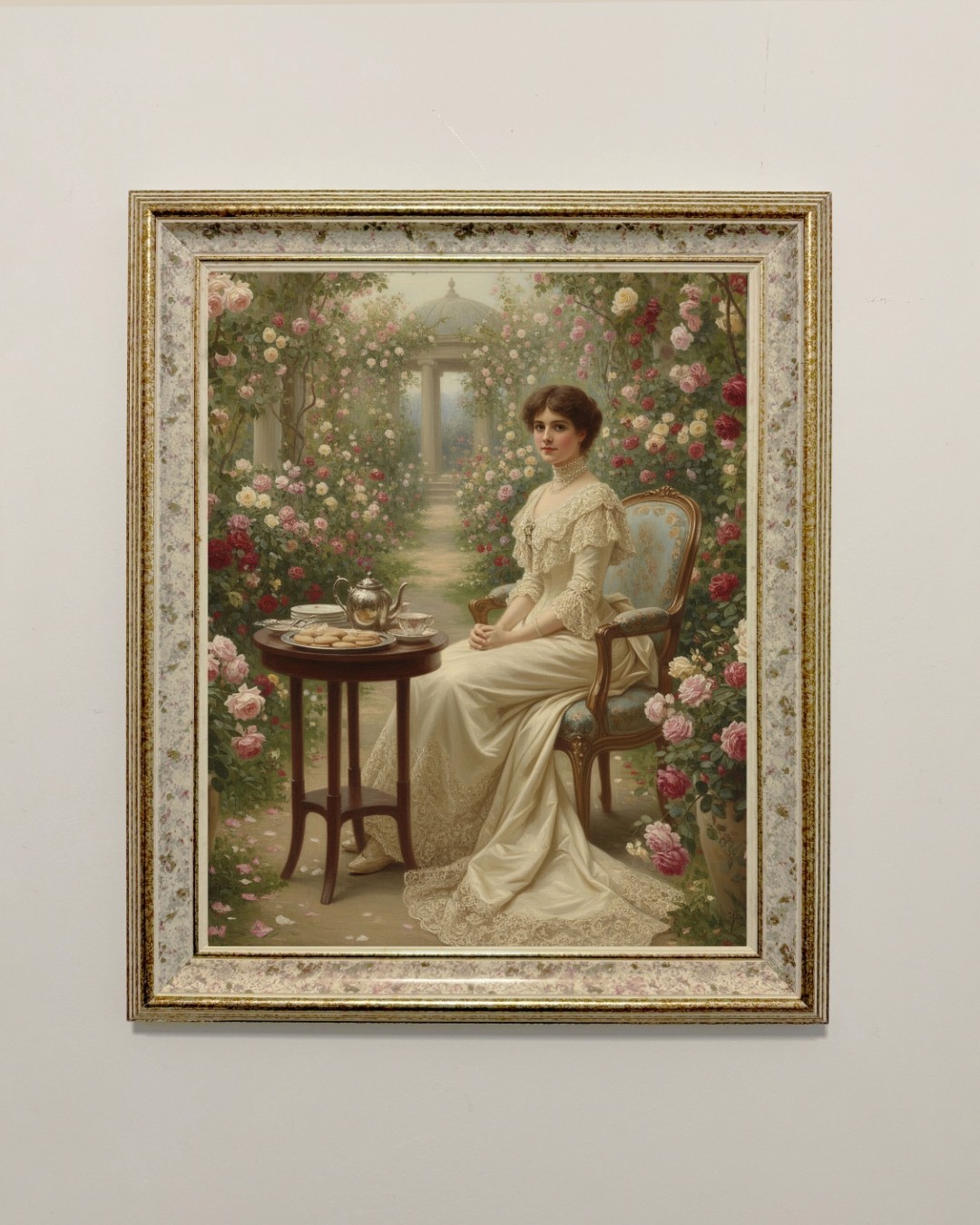 กรอบรูปลายไม้แท้งาน ลาย Vintage รุ่นเก่า งานภาพพิมพ์ The Lady with teatime
