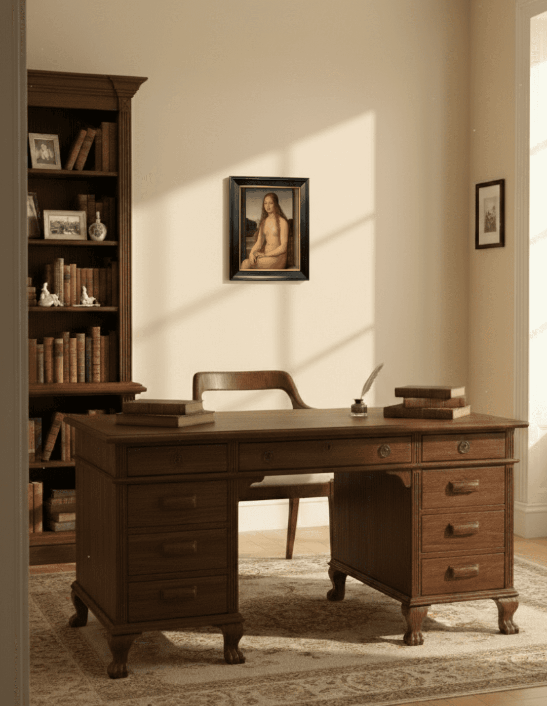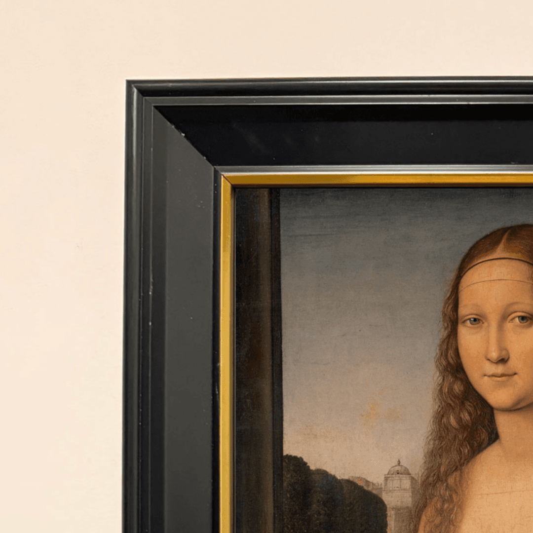 กรอบรูปสีดำด้านขอบทอง ภาพพิมพ์ สไตล์สีน้ำมัน บนผ้าใบ ภาพ The Venus