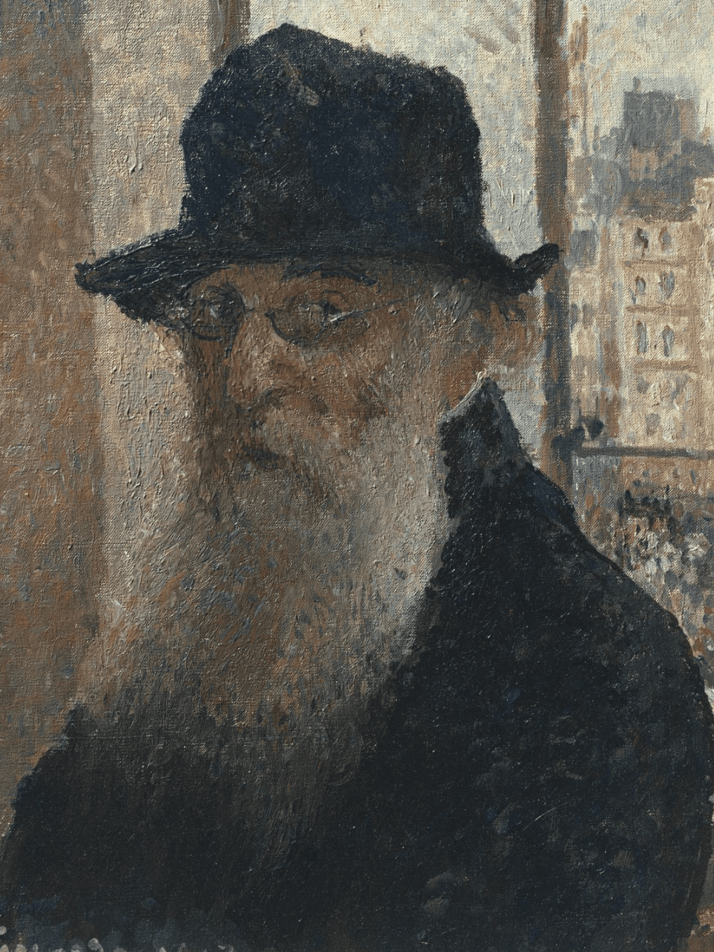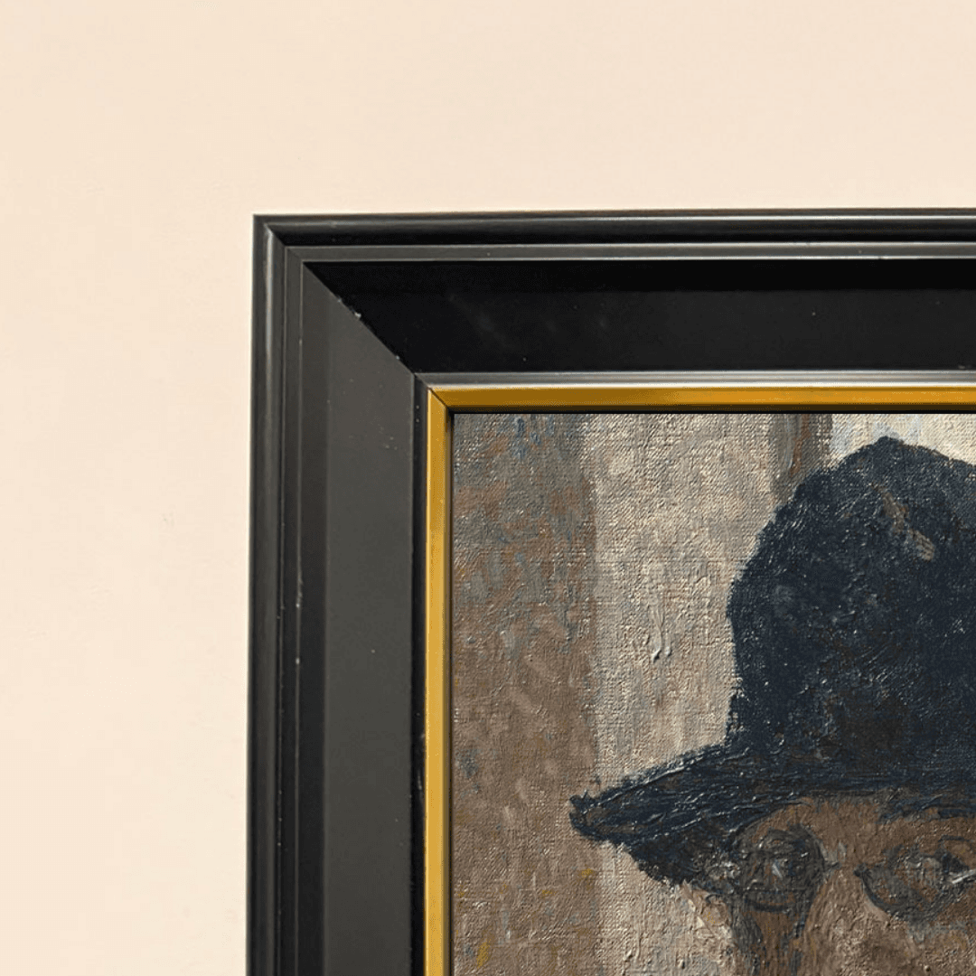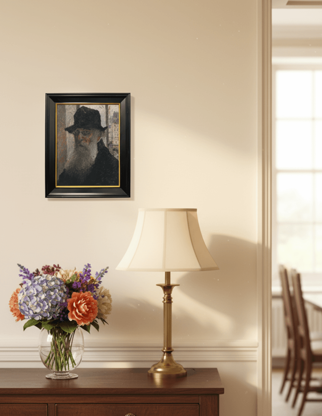 กรอบรูปสีดำด้านขอบทอง ภาพพิมพ์ สไตล์สีน้ำมัน บนผ้าใบ ภาพ Camille Pissarro's Self-Portrait with Hat (1903)
