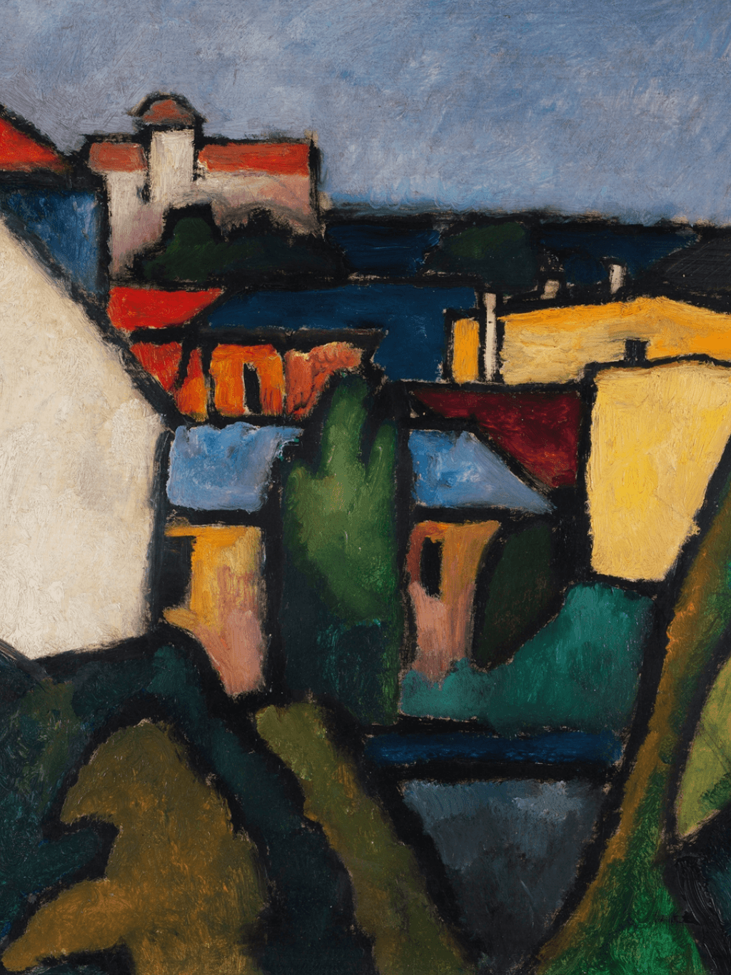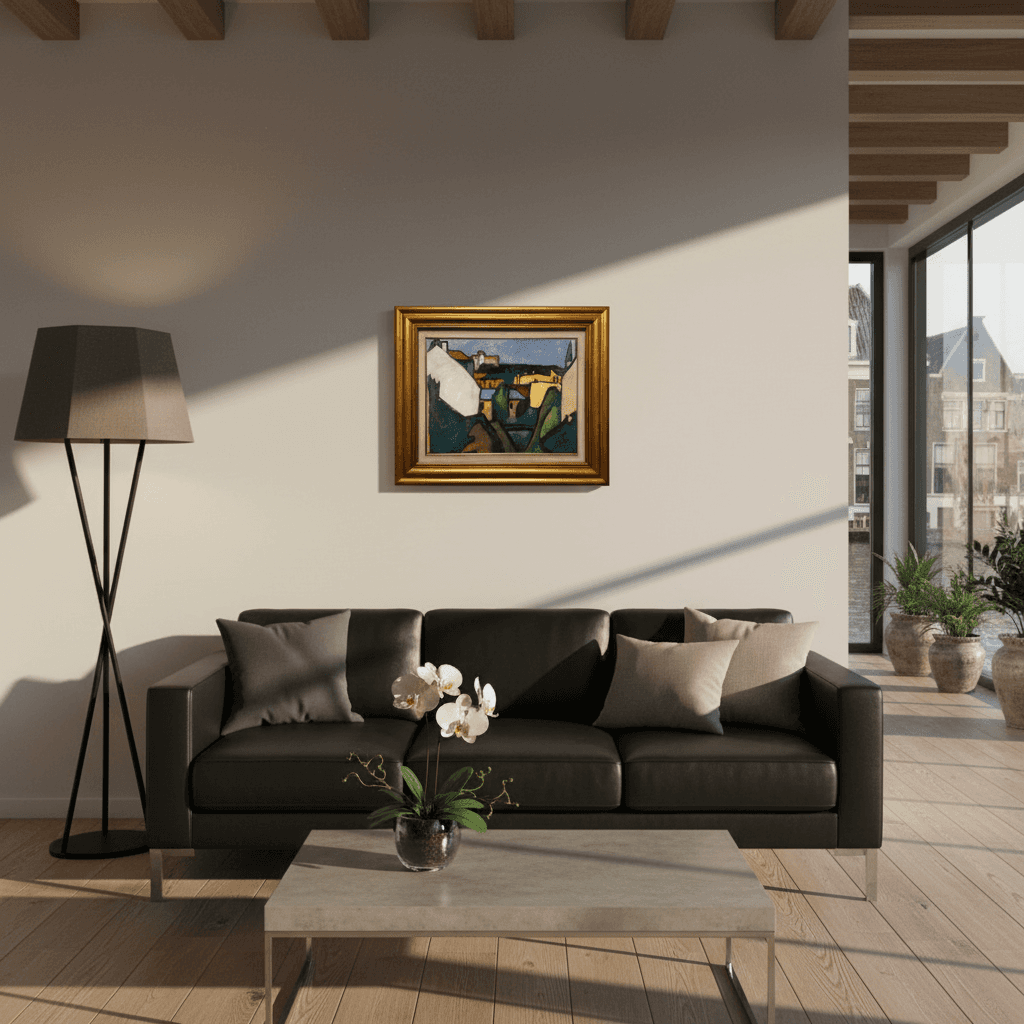 กรอบรูปสีทองสุกใส ภาพพิมพ์ สไตล์สีน้ำมันบนผ้าใบ ภาพ Häuser (1910) Alexander Kanoldt (German, 1881-1939)