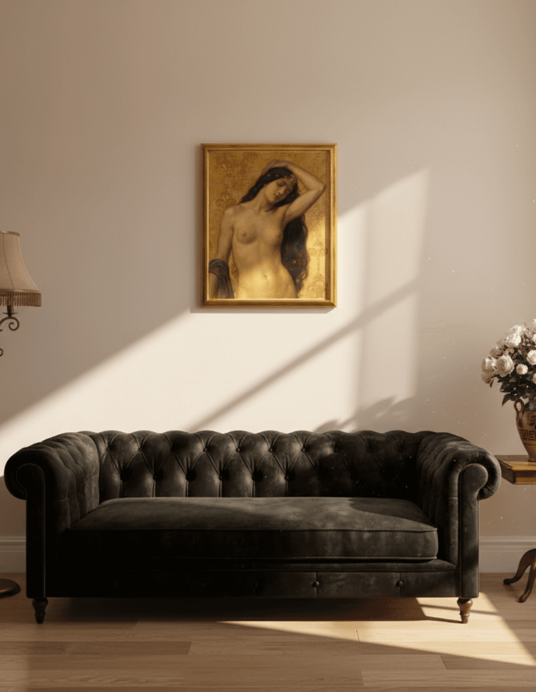 กรอบรูปทองแบบ Vintage สภาพใหม่ ภาพพิมพ์ สไตล์สีน้ำมัน บนผ้าใบ ภาพ The Erotic Portrait