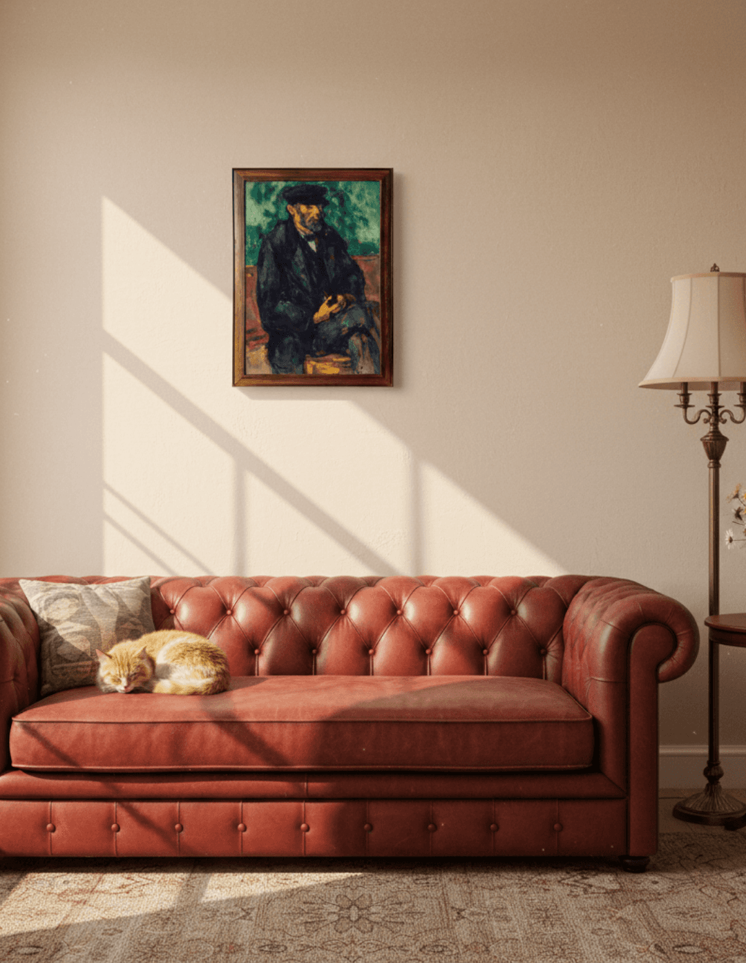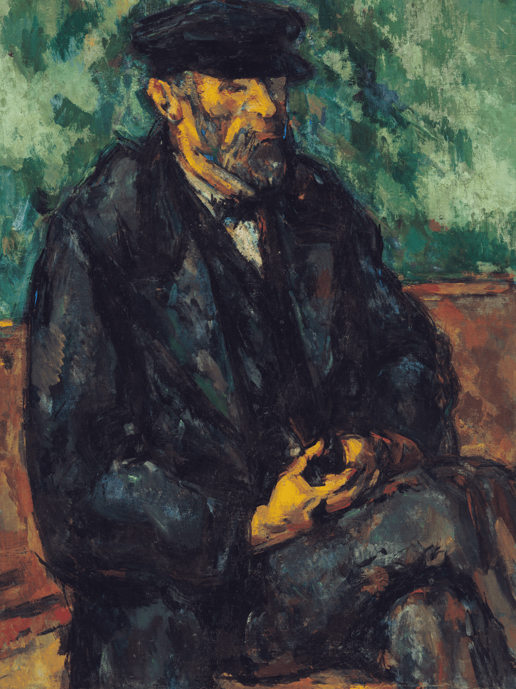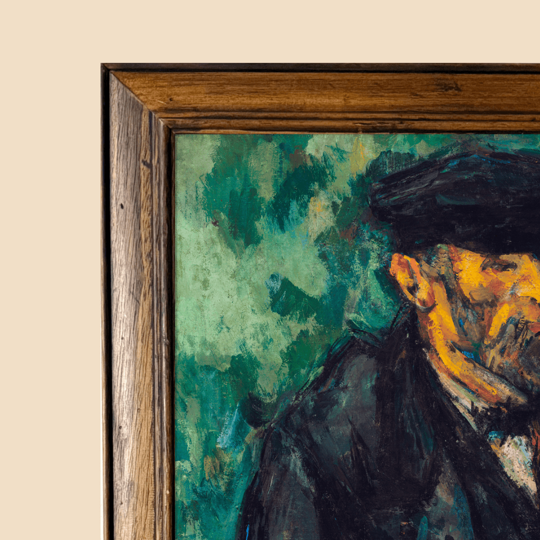 กรอบรูปไม้แท้เก่าจากญี่ปุ่น ติดกระจกตัดแสงสะท้อน ภาพพิมพ์ สไตล์สีน้ำมัน บนผ้าใบ ภาพ The Gardener Vallier (1906) by Paul Cézanne
